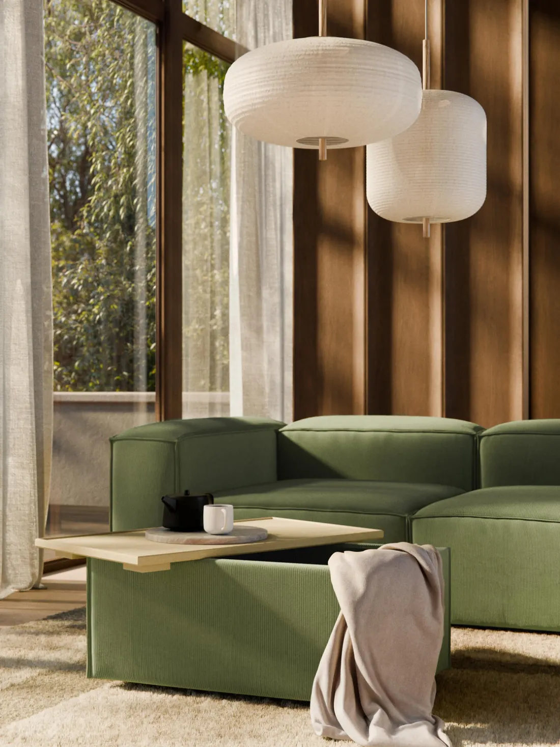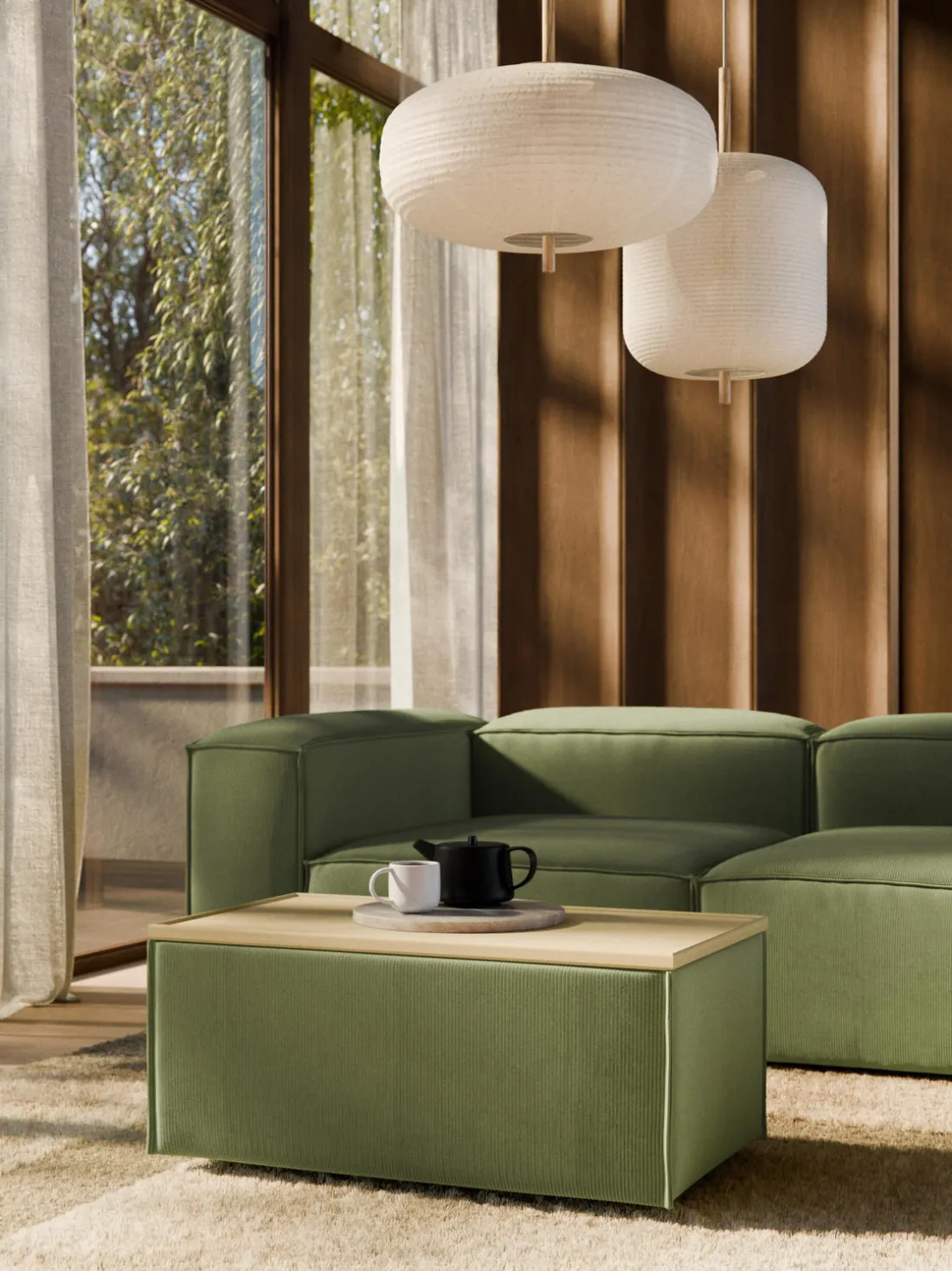 Reposapiés puf de pana con espacio de almacenamiento Lennon