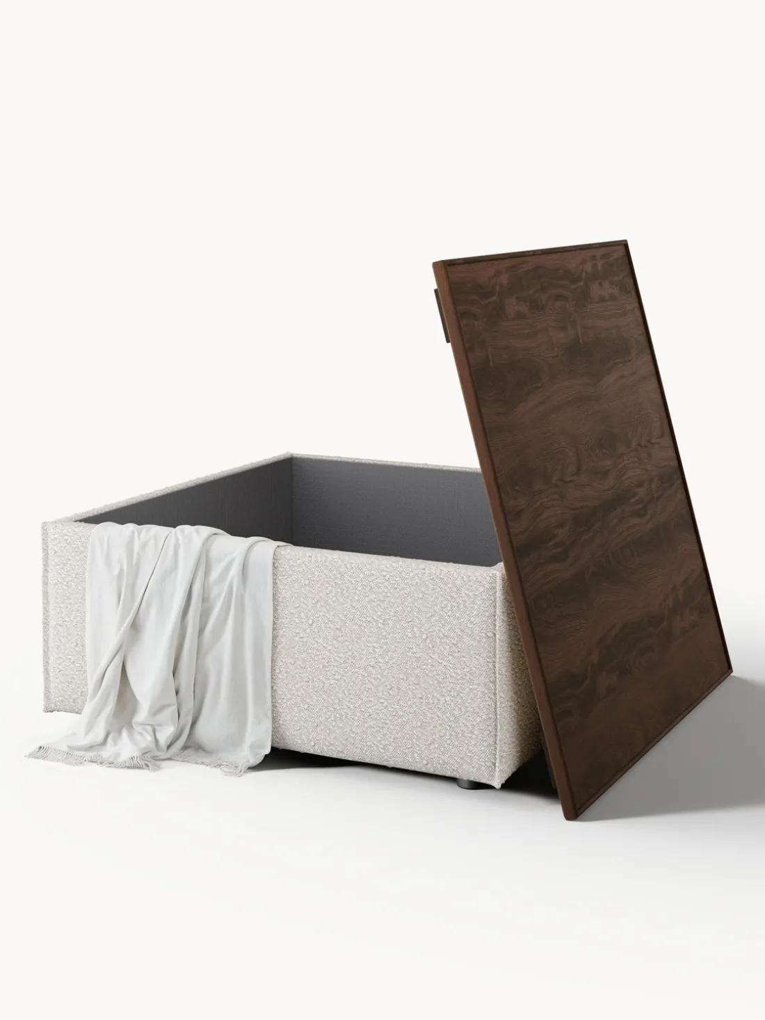 Reposapiés puf en tejido bouclé con espacio de almacenamiento Lennon