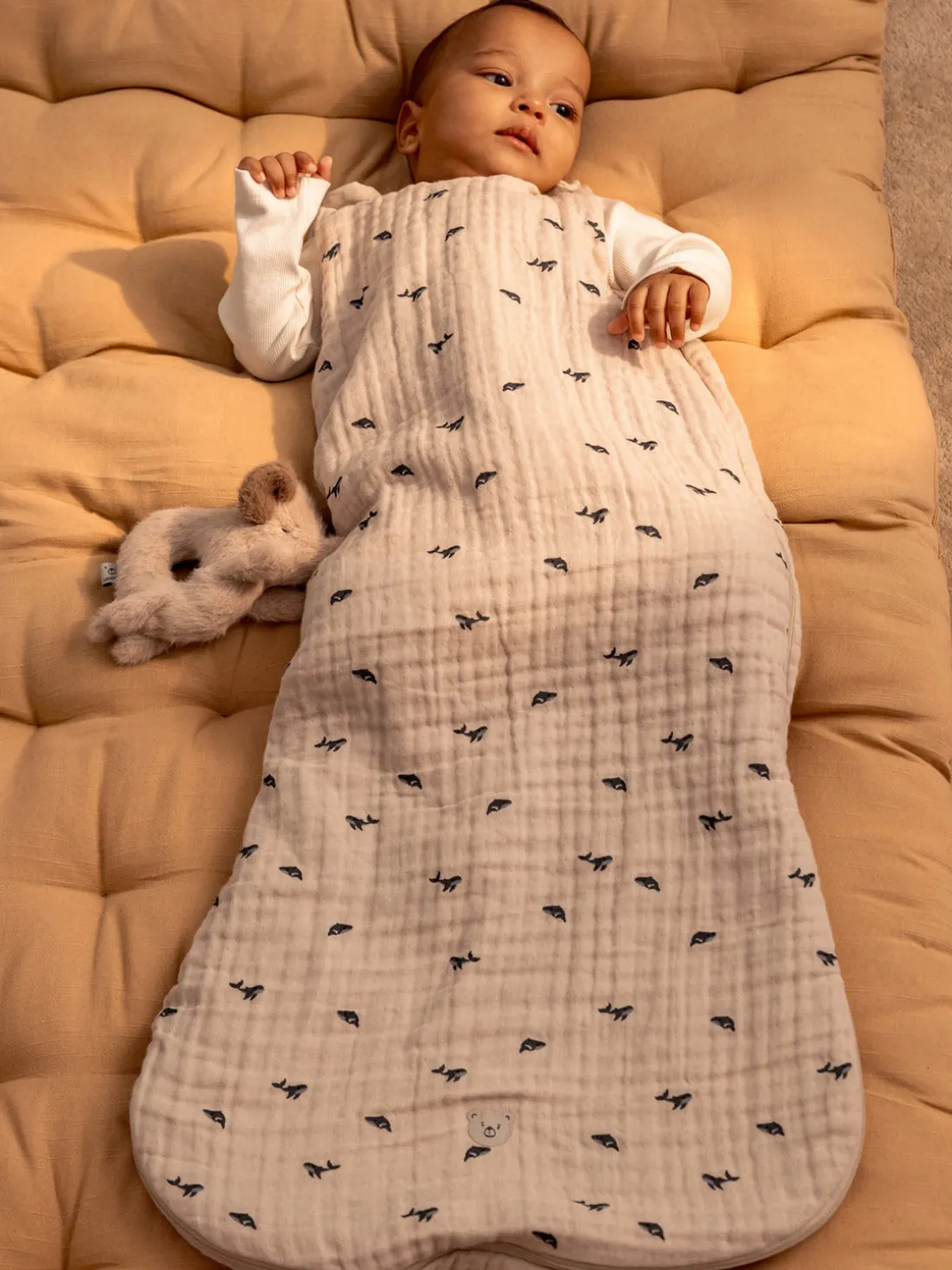 El saco de dormir sin mangas FLORA mantiene a los más peques abrigados y cómodos durante toda la noche. Está diseñado con una práctica cremallera para facilitar los cambios nocturnos y dos botones a presión en cada hombro, lo que facilita ponérselo y quitárselo. Hecho de algodón orgánico transpirable, el saco de dormir es perfecto para los templados días de primavera y verano.
