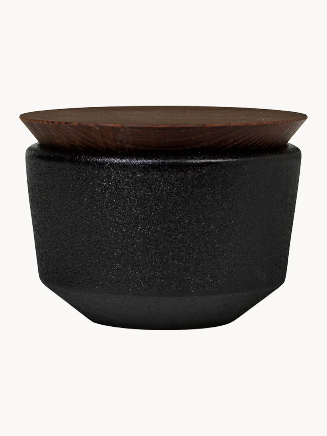El salero está hecho de cerámica con una tapa de madera de fresno.