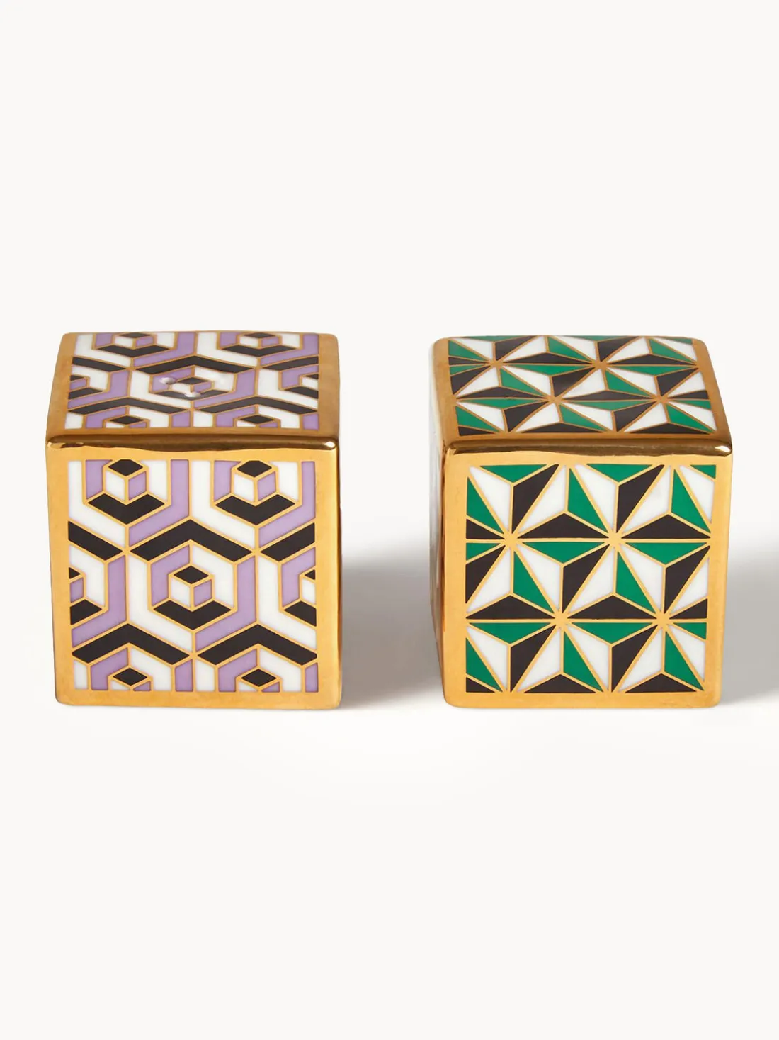 Con motivos geométricos psicodélicos en seductores colores y detalles en oro macizo para añadir glamour, el salero y pimentero Versailles de porcelana de alta cocción pondrá en movimiento tu mesa. Presentados en una elegante caja de regalo, son el obsequio perfecto para bodas, aniversarios o anfitriones.