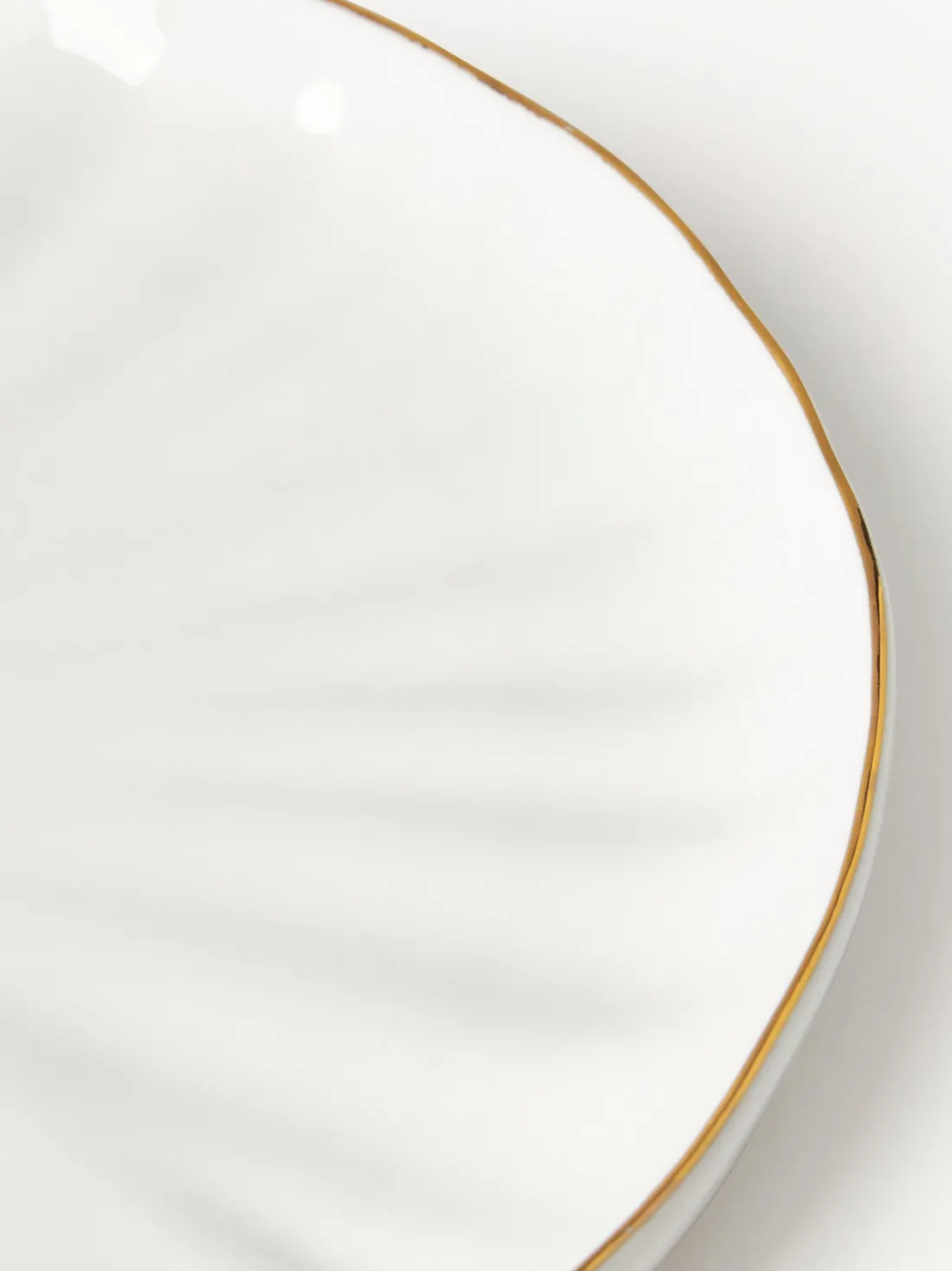 Set de desayuno con borde y relieve pintado a mano que consta de cuatro platos, cuatro platos postre y cuatro tazas.