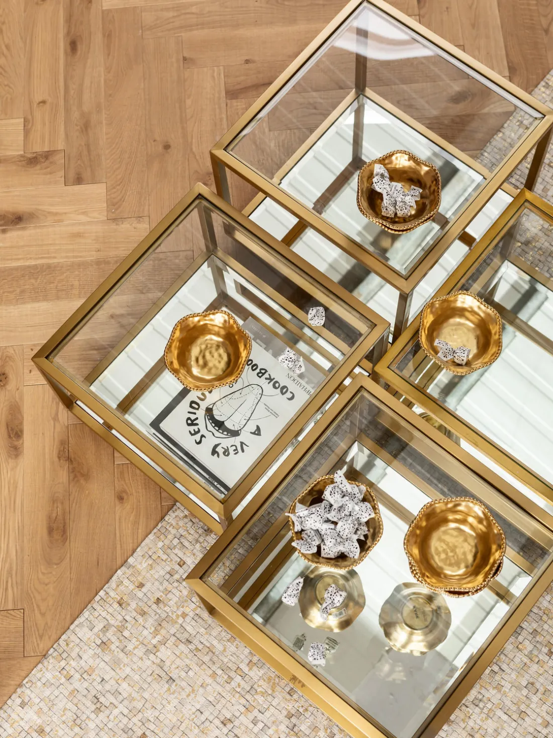 Mesa 3, 4: cada una de ancho 50 cm, alto 35 cm, fondo 50 cm
