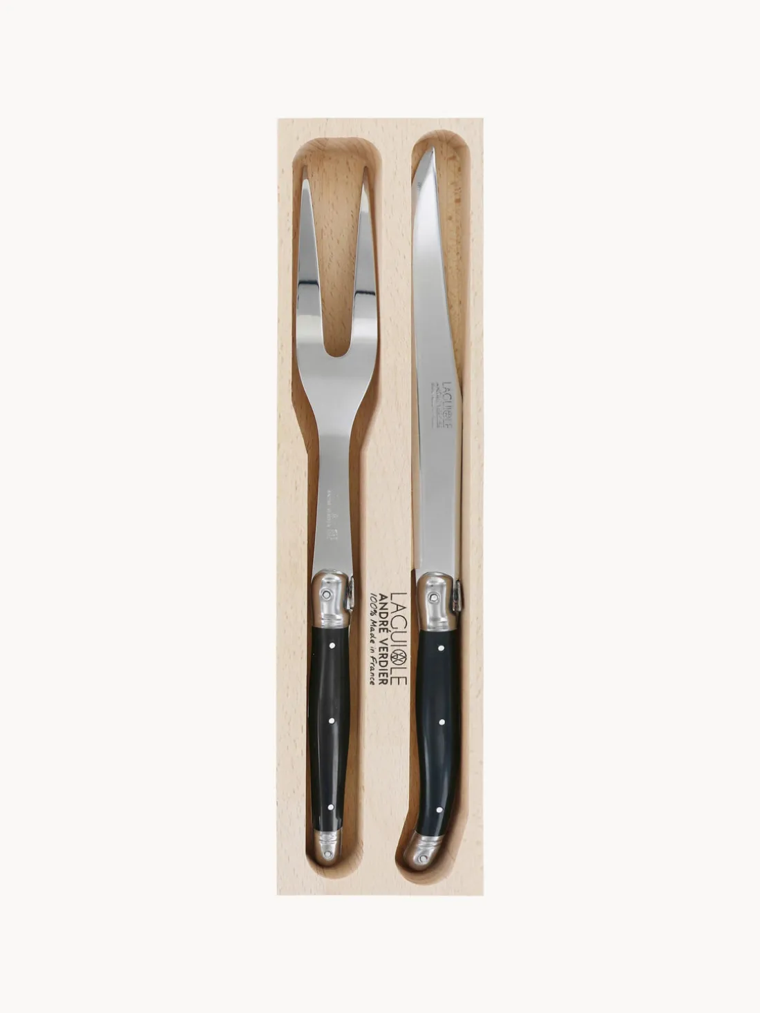 Descubre la elegancia atemporal de la cubertería Laguiole 100% francesa, un precioso tesoro para tu mesa. Cada pieza cuidadosamente elaborada combina belleza, tradición y funcionalidad, así que encarna el arte de la buena mesa. Deja que esta cubertería enriquezca tus comidas y cree momentos inolvidables donde el placer culinario se une a la sofisticación estética.