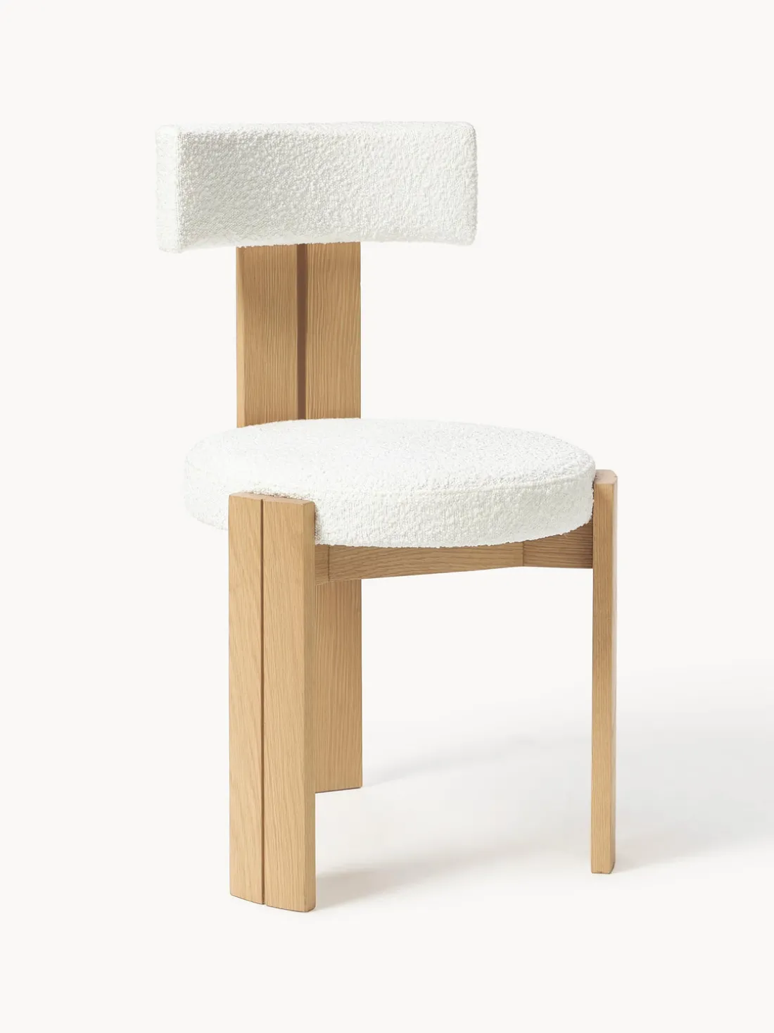 De formas elegantes y carácter audaz, la silla KATYA capta la atención por su serena confianza. Su distintiva estructura de tres patas es más que una elección estructural: es una declaración escultural que distingue a KATYA. Fabricada en madera maciza de fresno, sus líneas limpias y su respaldo abierto crean una sensación de ligereza, mientras que sus proporciones compactas la hacen ideal para espacios pequeños o distribuciones dinámicas. El asiento de boucle táctil añade suavidad y profundidad, ofreciendo un suave contraste con el marco arquitectónico. Ya sea alrededor de una mesa de comedor o como elemento decorativo, KATYA equilibra la artesanía con la elegancia contemporánea: una elección refinada para los amantes del diseño que buscan lo excepcional en lo cotidiano.