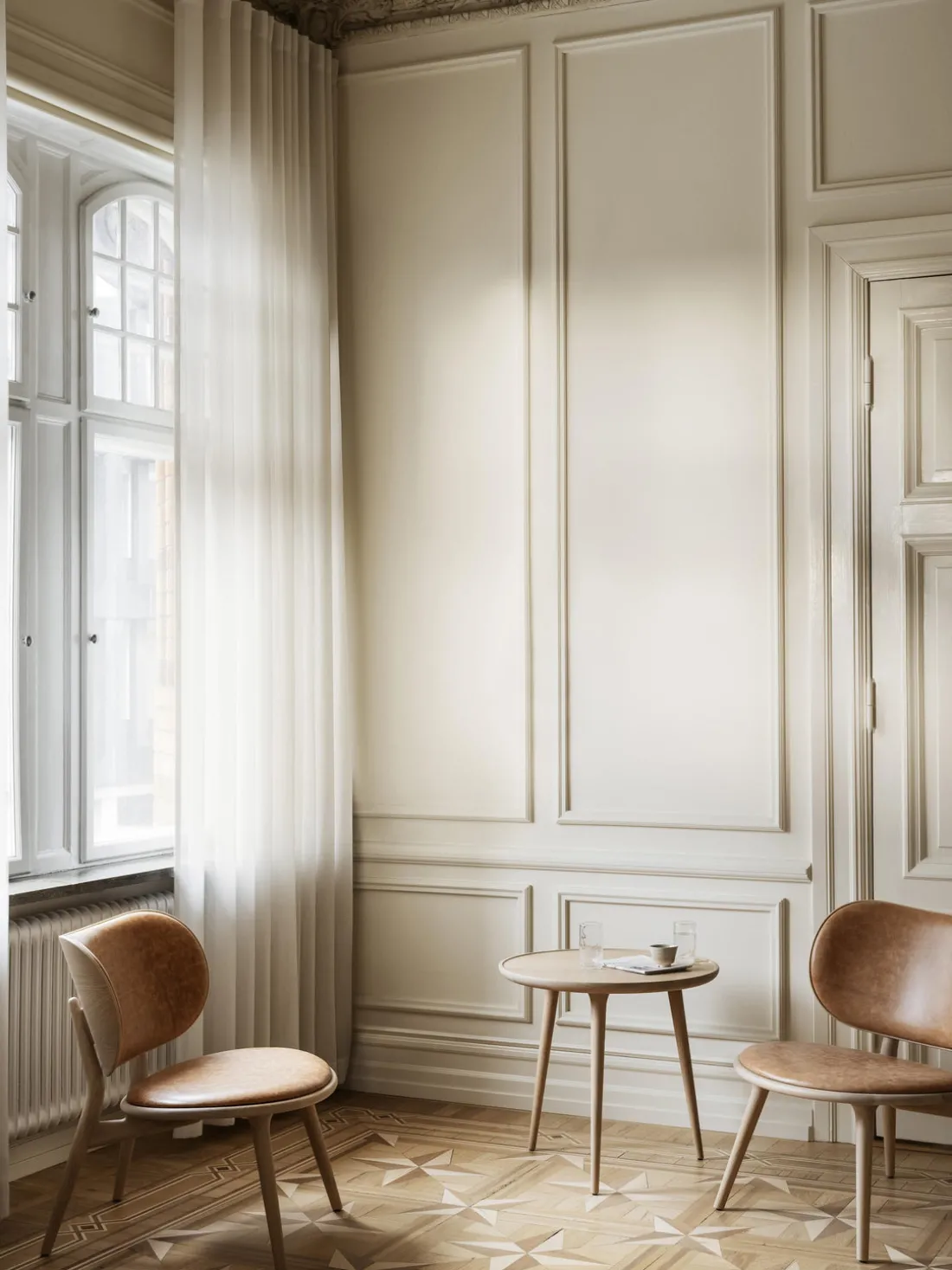 | Color | Cuero beige, madera de roble clara |