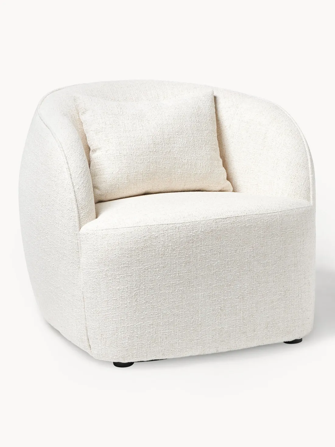 Con su color beige claro, el sillón de cóctel Elodie en tejido bouclé se adapta perfectamente a cualquier tipo de decoración y crea un ambiente cálido.