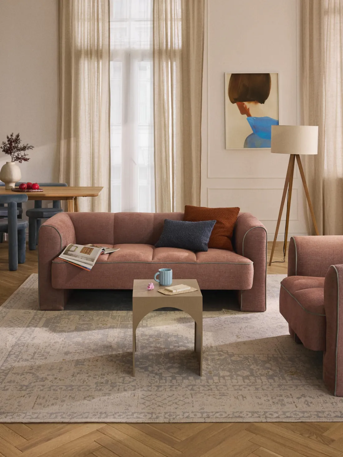 Nuestro consejo: asegúrate de que tus muebles tapizados no estén expuestos a la luz solar directa. Los textiles son sensibles a la luz y pueden desteñirse con el tiempo.