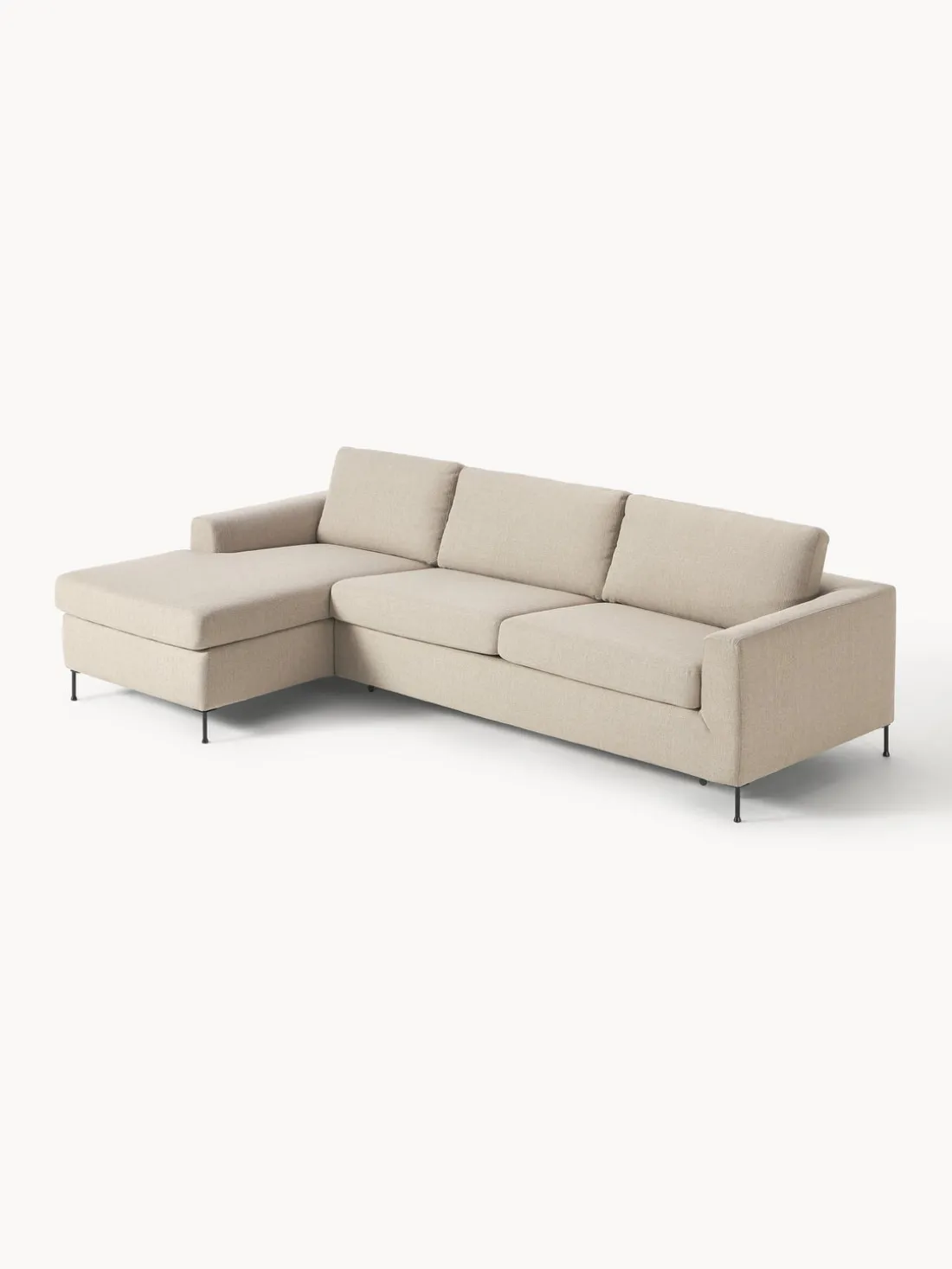 La chaise longue está en el lado izquierda cuando estás frente al sofá.