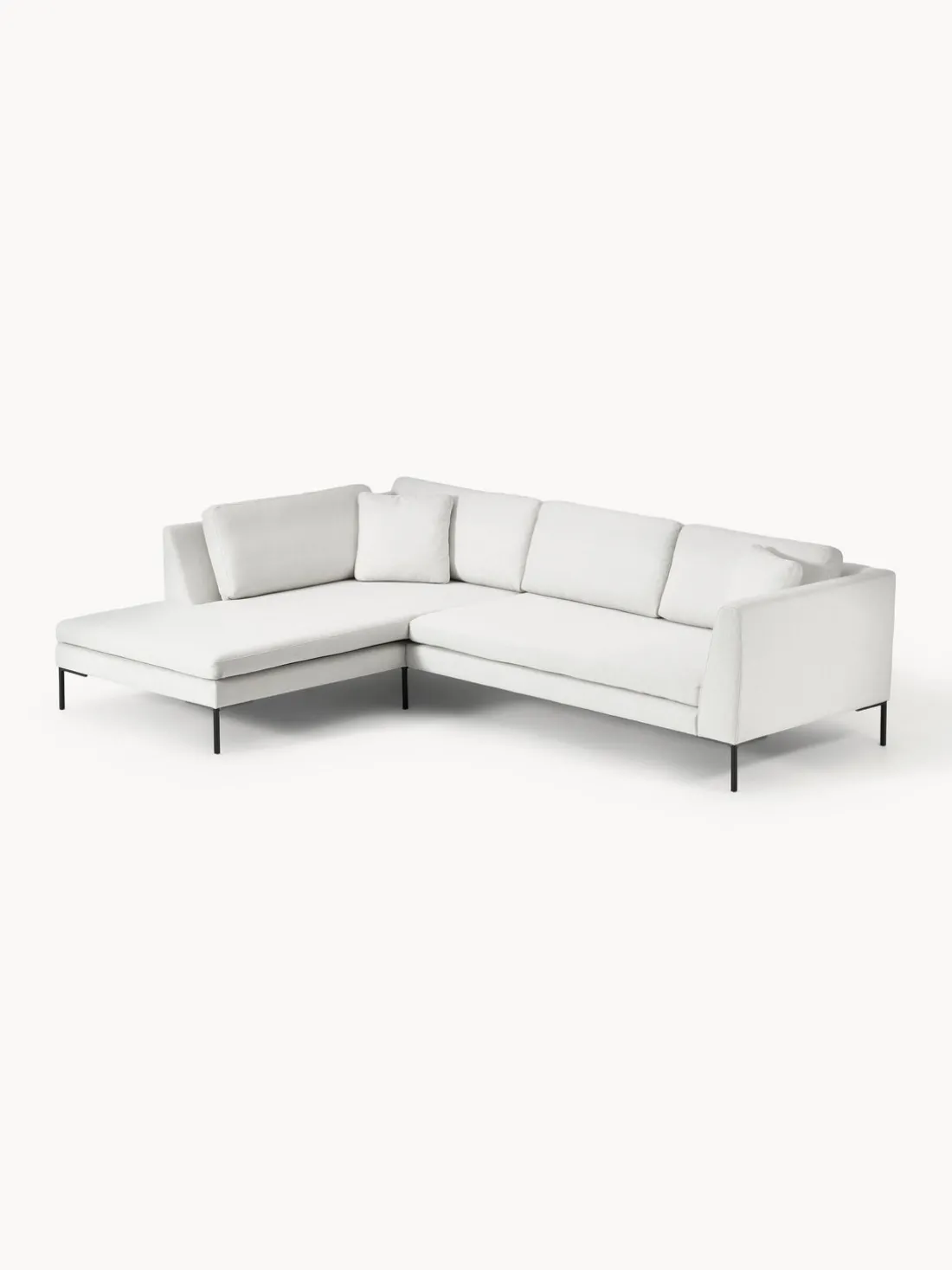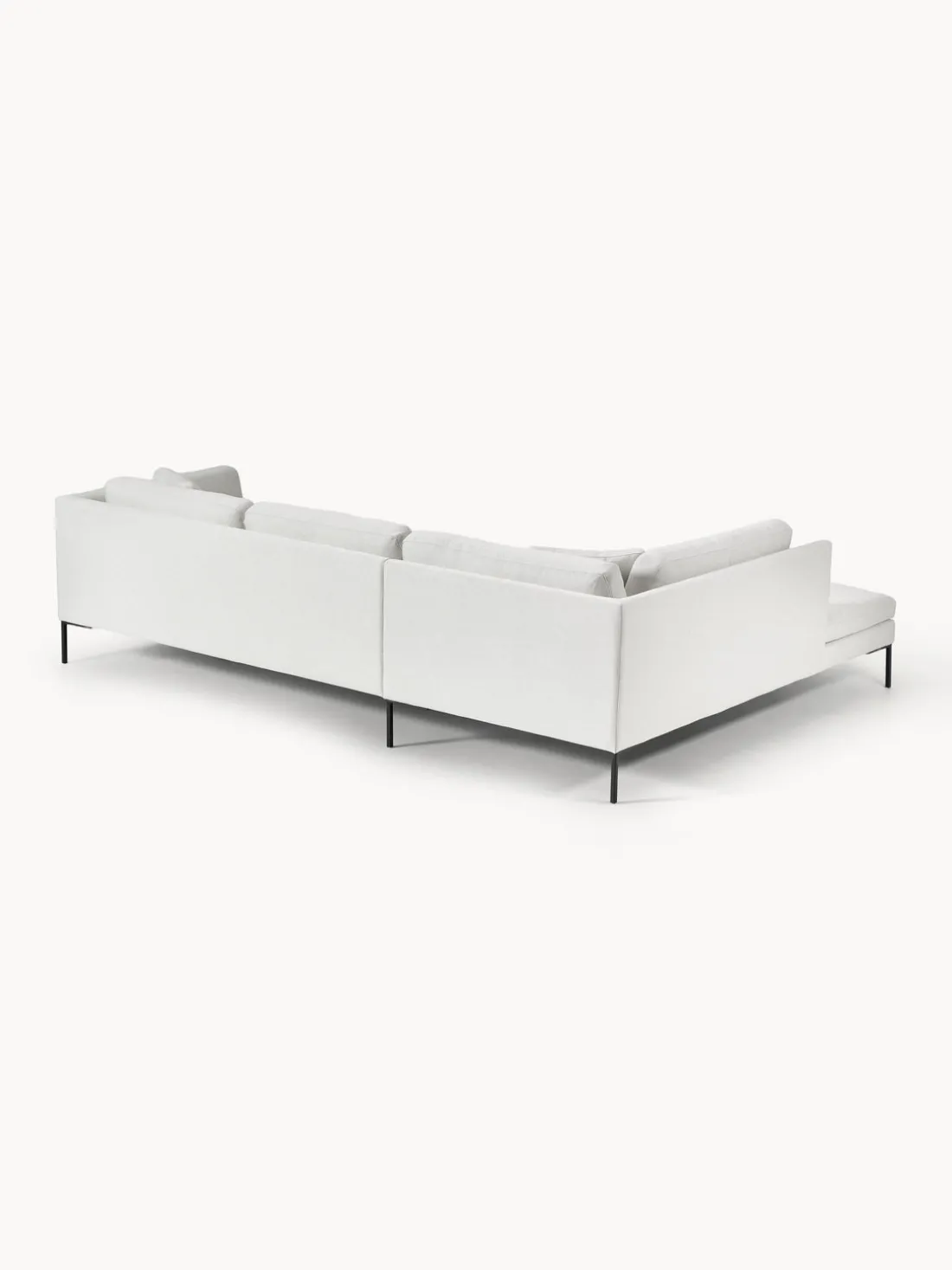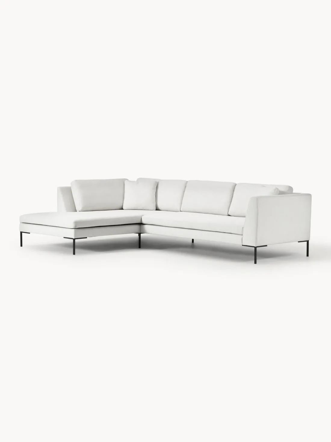 La chaise longue está en el lado izquierdo cuando estás frente al sofá.