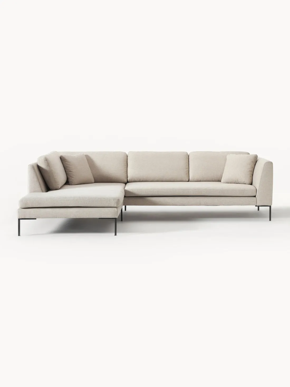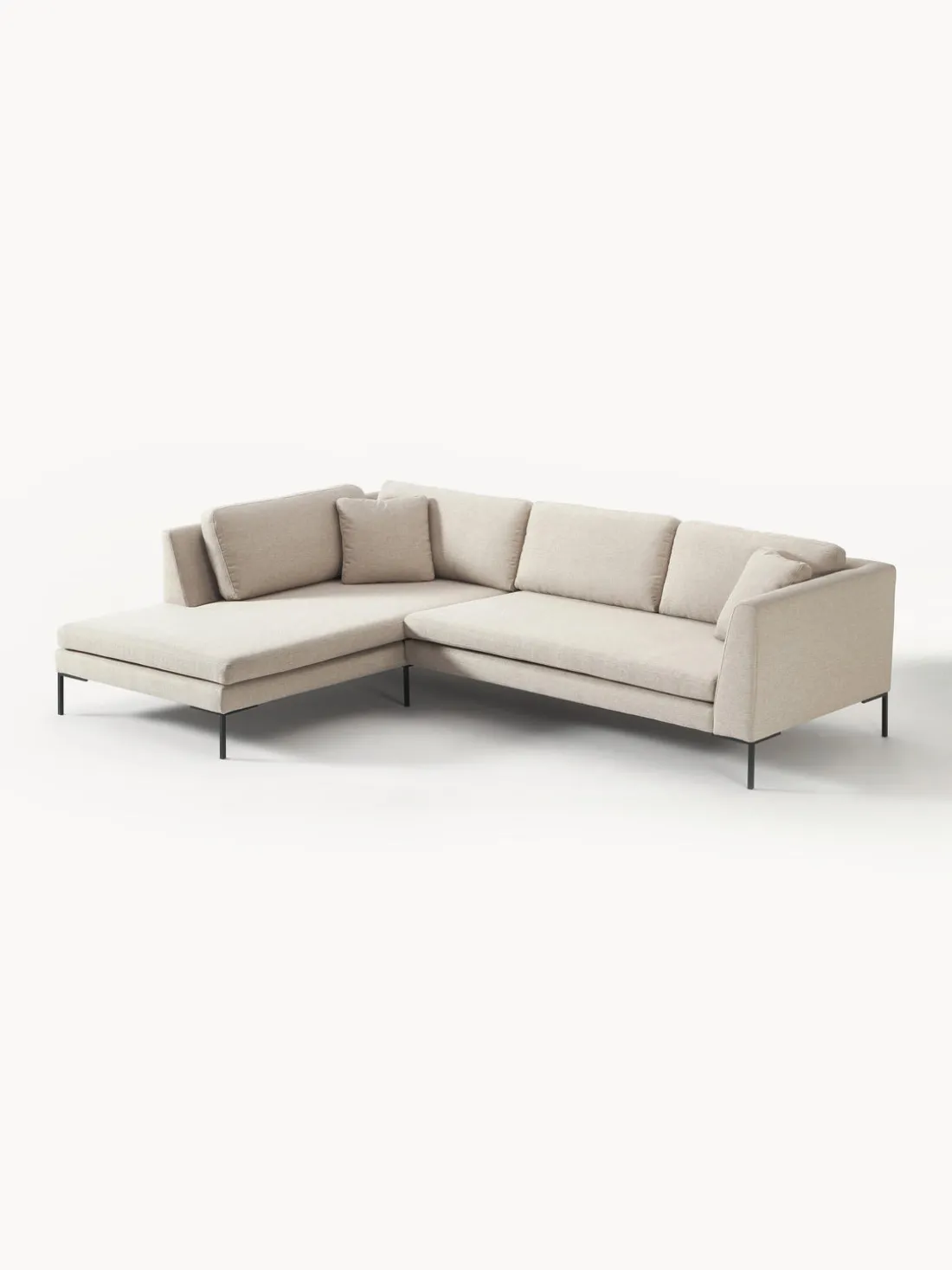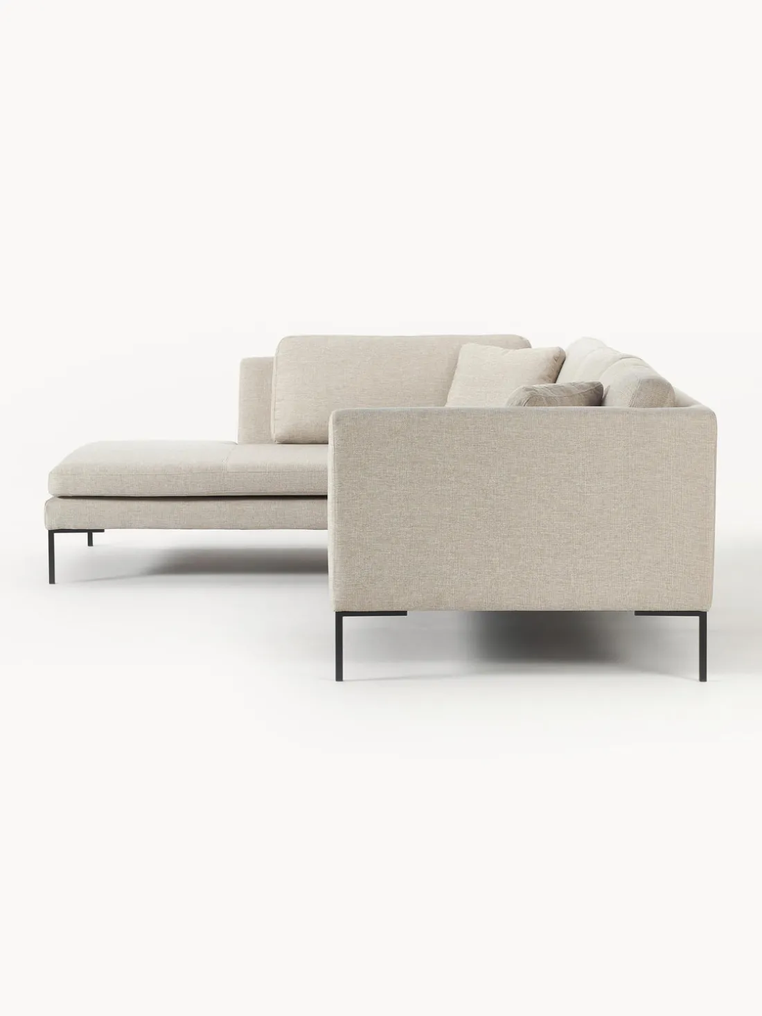 La chaise longue está en el lado izquierdo cuando estás frente al sofá.