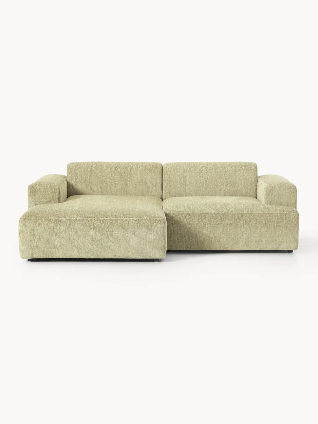 La chaise longue está en el lado izquierdo cuando estás frente al sofá.