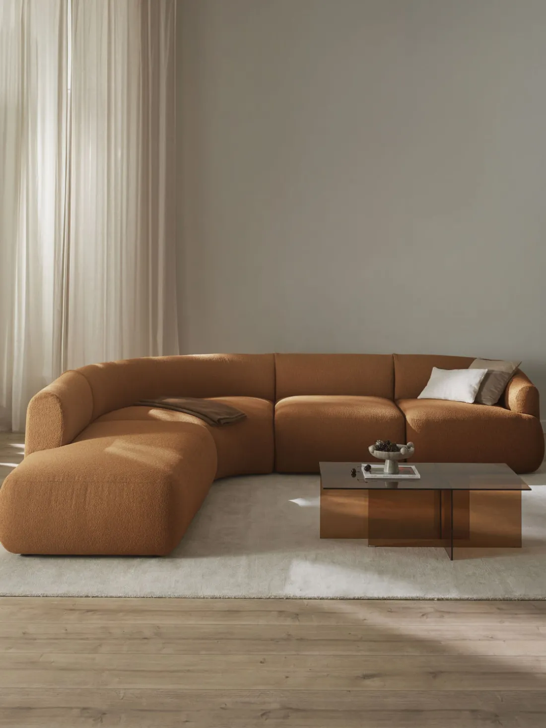 Los 5 módulos se pueden combinar a tu gusto para crear tu sofá. Se entrega en cuatro partes, que se pueden juntar individualmente mediante enganches en la parte inferior de los módulos.