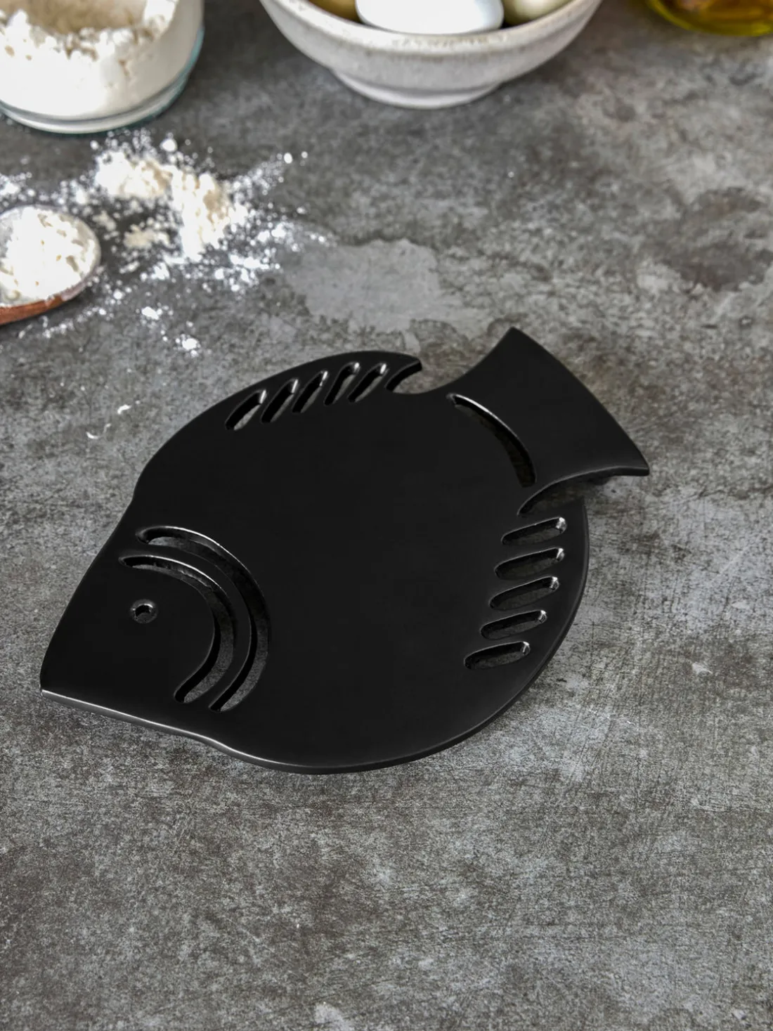 Este encantador posavasos con forma de pez protege tu mesa del calor con estilo. Fabricado en aluminio negro, combina durabilidad con un aspecto elegante. Los detalles decorativos de la forma de pez garantizan una estética atractiva y ofrecen ventajas prácticas en la vida cotidiana.