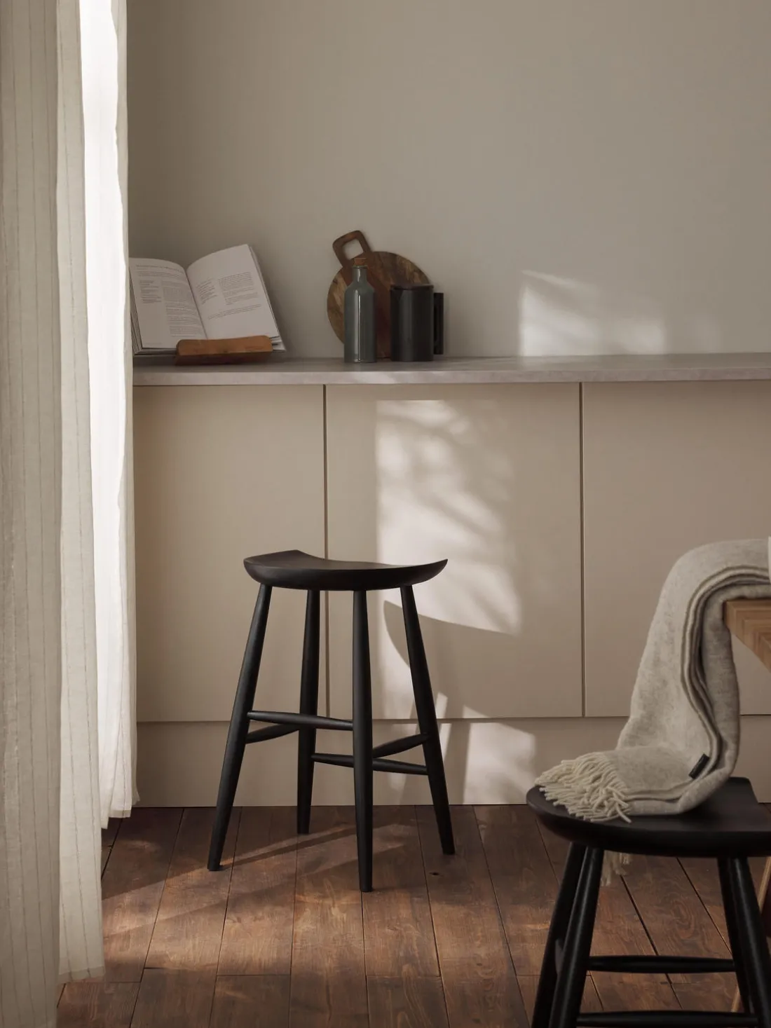 | Color | Madera de mango lacada en negro |