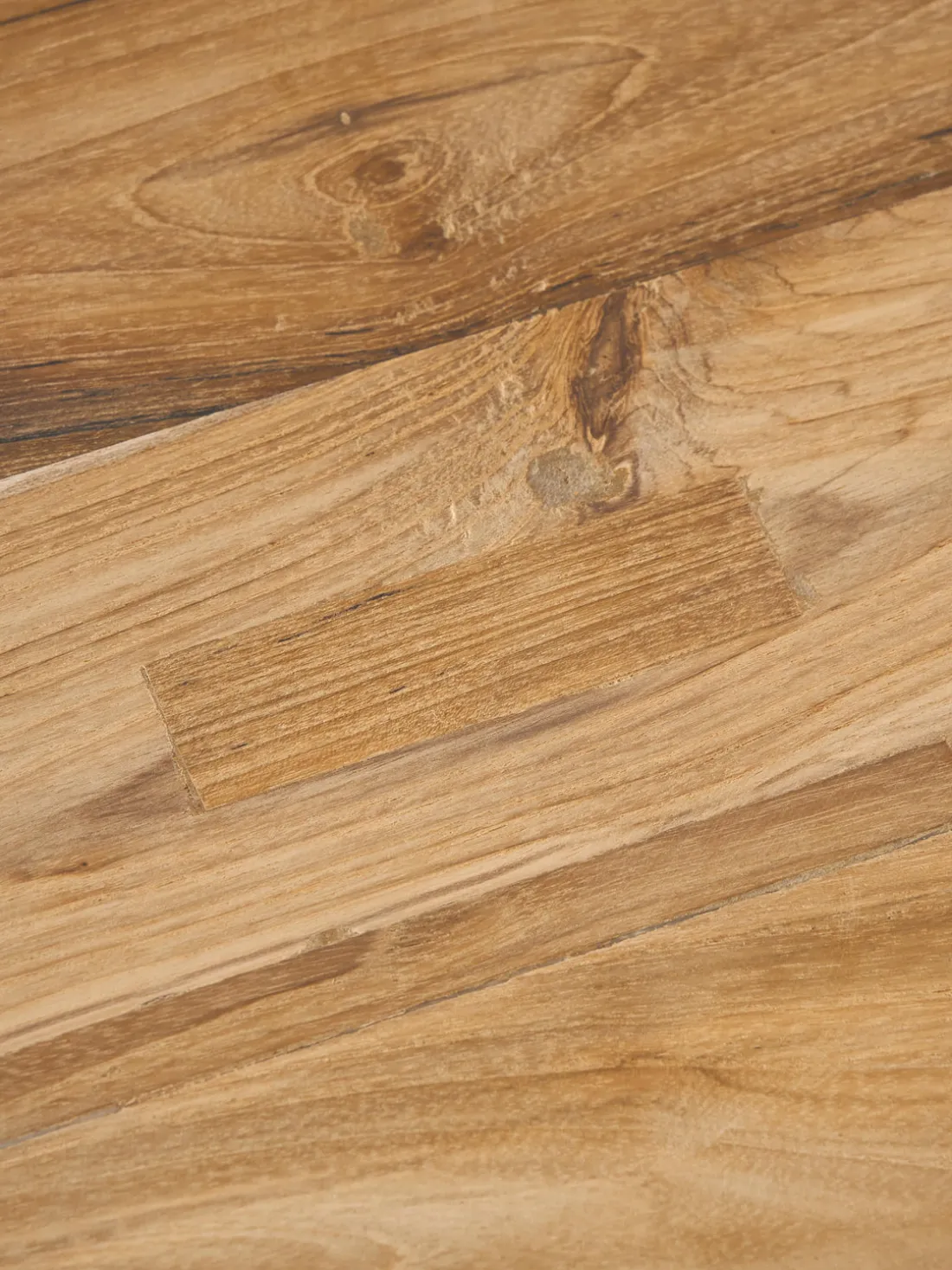 Si los muebles de madera de teca no se tratan, una película delgada de color gris plateado se puede formar con el tiempo en la superficie. Se recomienda frotar la madera con un estropajo áspero y agua tibia, al menos una vez al año. Si deseas mantener el color original de la madera de teca, se recomienda el uso de aceite de teca adecuado.