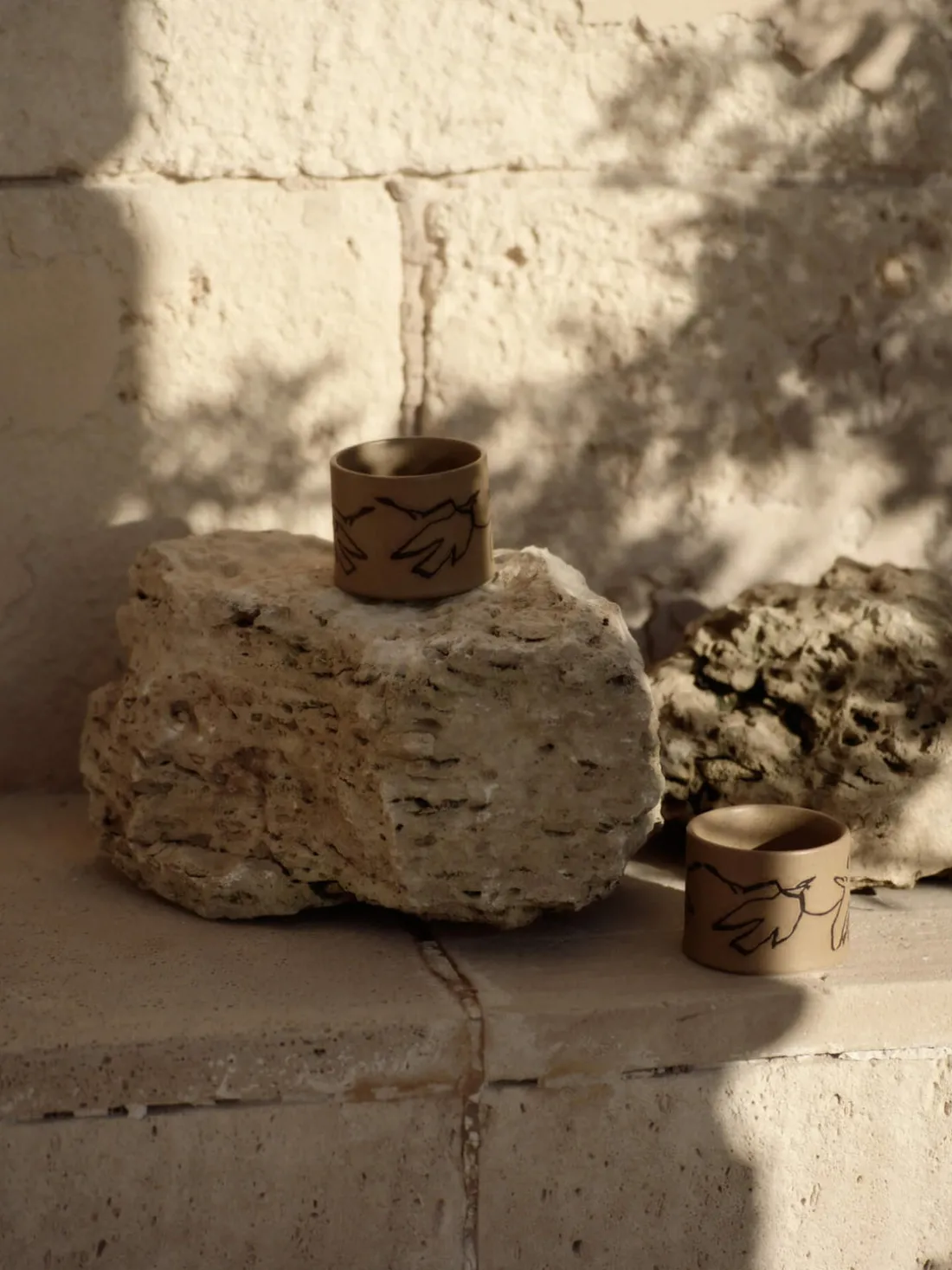 La taza VUELO reproduce los elegantes bocetos de pájaros que Utzon realizó durante su estancia en Can Lis. La taza captura la fluidez y la gracia de su motivo de pájaro. Hecho en loza esmaltada, cada pieza lleva marcas distintivas hechas a mano que le confieren una calidad artesanal única. El motivo del pájaro se ha realizado mediante una técnica tradicional de batik en la que la cera resiste al esmalte, lo que da lugar a intrincados dibujos que acentúan el carácter artesanal de la taza.