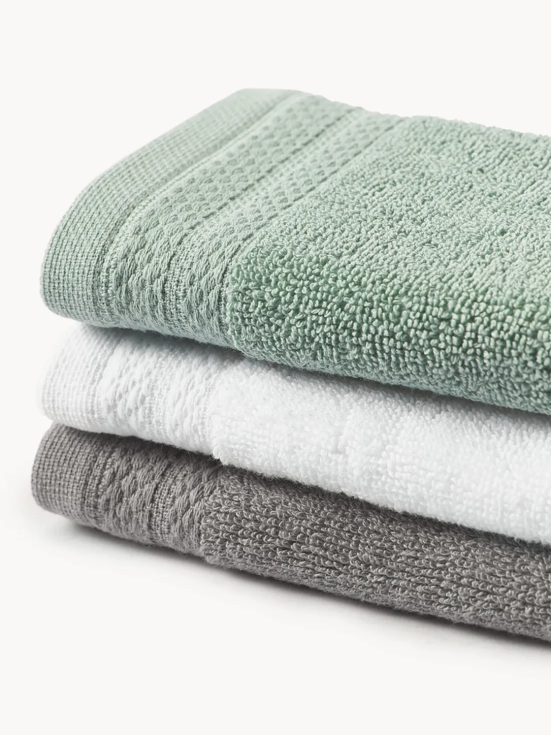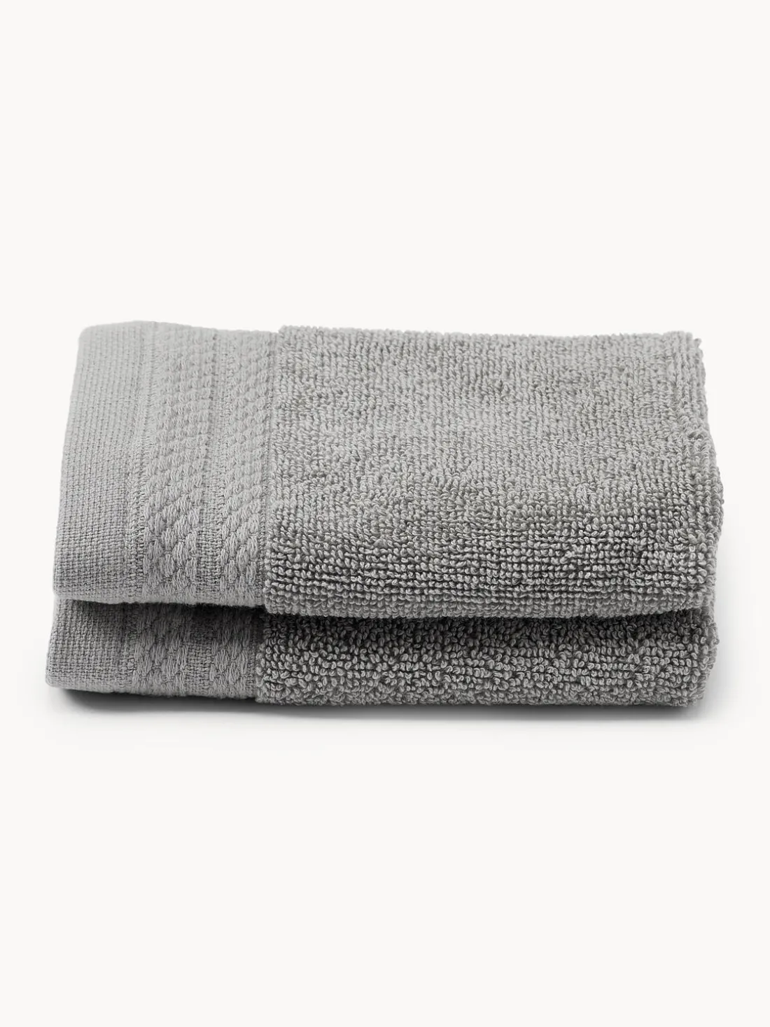 Toallas tocador pequeñas con borde ornamental clásico y un lazo para colgar están hechas de algodón ecológico con certificado GOTS.