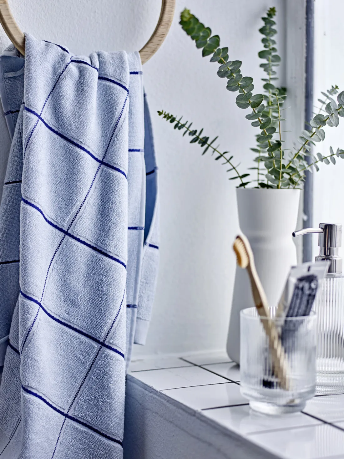 Presentamos las toallas VISTA, la clave para una experiencia de baño que prioriza la comodidad y la ecología. Las toallas están tejidas en un lujoso tejido de rizo teñido en hilo que las hace irresistiblemente bellas. El diseño minimalista a cuadros añade un toque de elegancia moderna a tu cuarto de baño. Además de su estética, el cómodo algodón garantiza una sensación suave sobre la piel durante tu rutina diaria.
