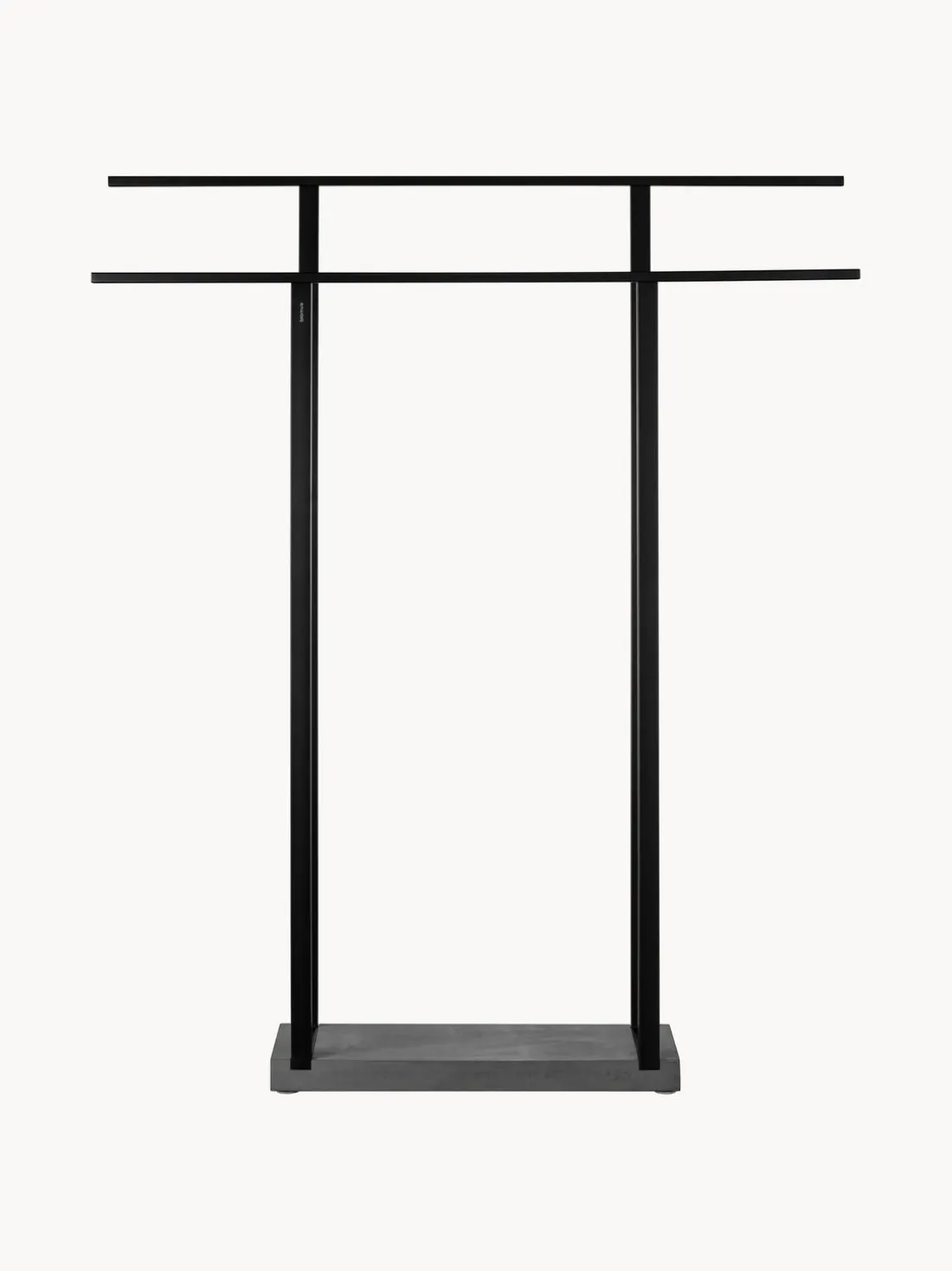 El toallero MENOTO se puede colocar libremente en el baño y las toallas siempre están al alcance de la mano en los dos largos estantes de almacenamiento, pero también se pueden colgar para secarse después de la ducha. La construcción estable y la base de piedra sintética hacen que el toallero se mantenga firme. El tubo cuadrado de acero inoxidable pulido está incrustado en la base de piedra sintética, atraviesa la base y crea un detalle particularmente sofisticado.