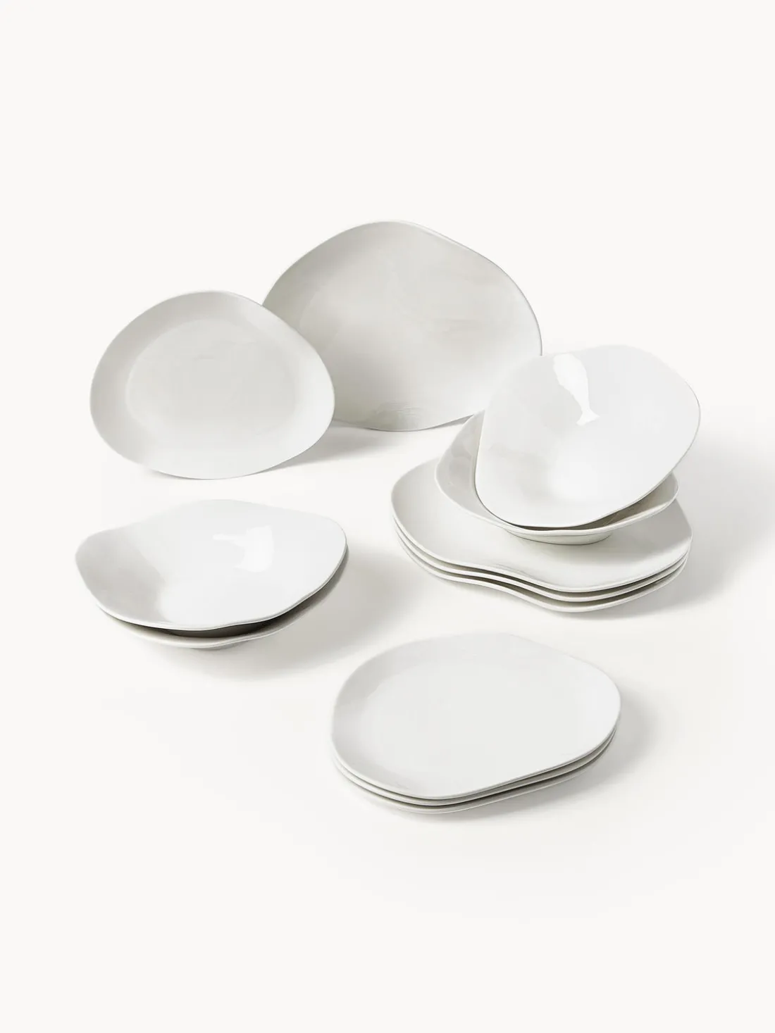 Esta vajilla de 12 piezas consta de cuatro platos llanos, cuatro platos postre y cuatro platos hondos.