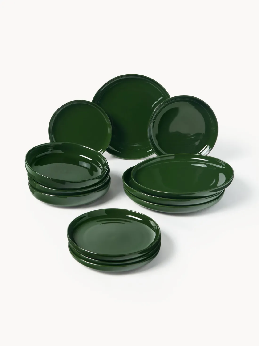 La vajilla de diseño atemporal consta de cuatro platos llanos, cuatro platos de pasta y cuatro platos postre.