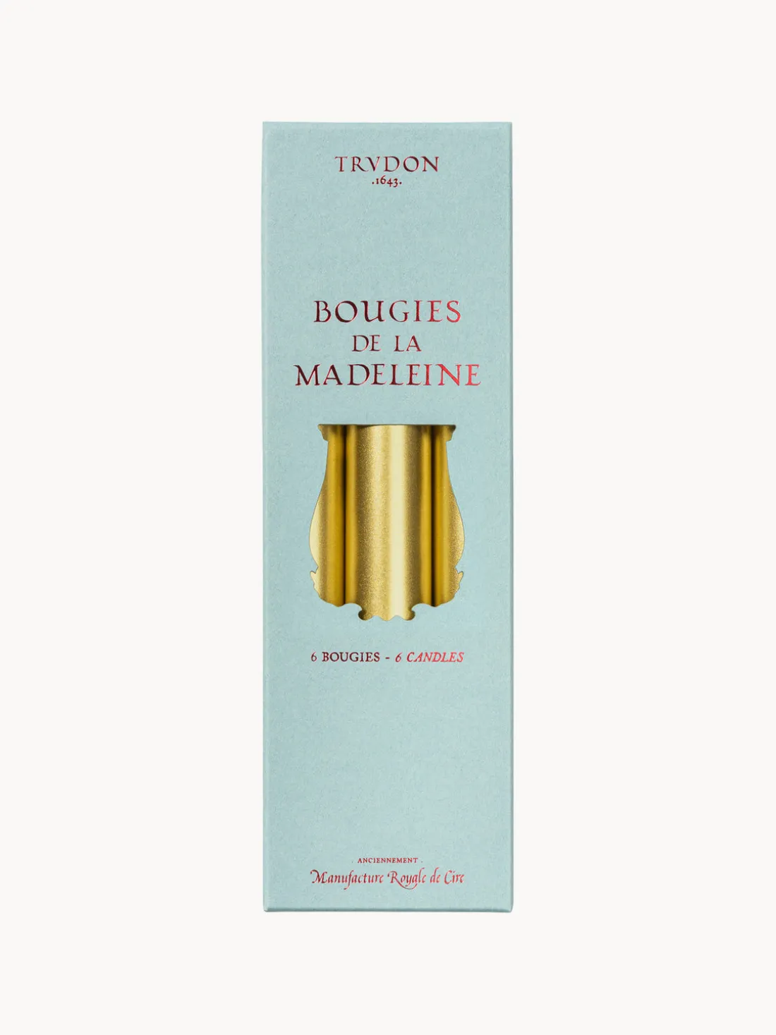 Estas velas, llamadas MADELEINE, se utilizaron para iluminar la iglesia de la Madeleine en París. Se fabrican en el taller de Normandía según métodos tradicionales. Las velas MADELEINE están hechas de cera de alta calidad y se tiñen en pequeñas cantidades. Son inodoras y no gotean.