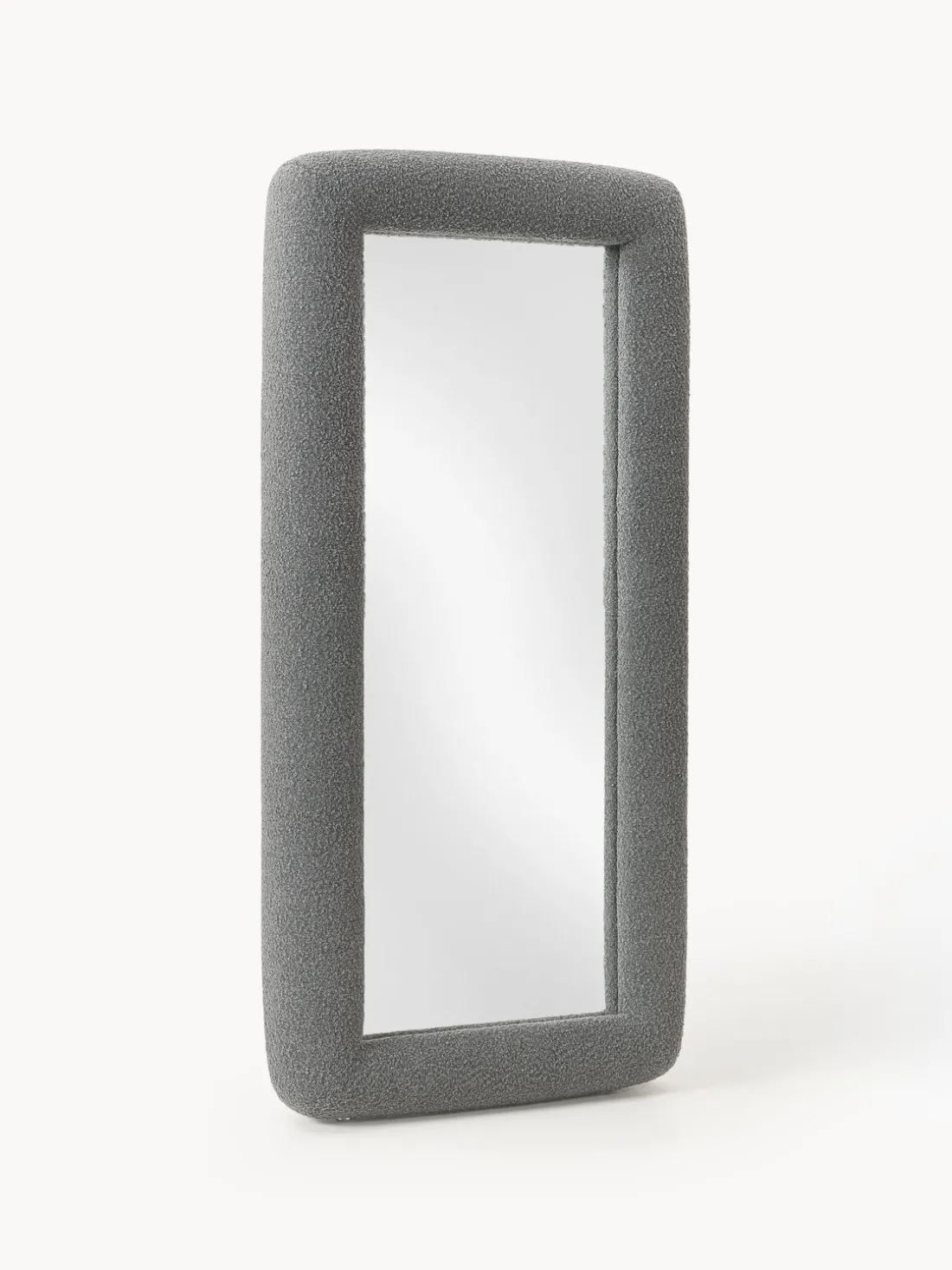 Con un giro escultórico en el reflejo cotidiano, el espejo GLACE lleva el lenguaje visual característico de los estudios Crosby a una forma inesperada y voluminosa. Enmarcado en bouclé táctil con un atrevido patrón de tablero de ajedrez gris, esta pieza de cuerpo entero y de pie convierte un objeto funcional en una declaración de diseño. El borde grueso acolchado añade suavidad y dimensión, jugando con la escala de una manera que se siente divertida pero sofisticada. El motivo de tablero de ajedrez, inspirado en una cuadrícula de Photoshop, un lienzo digital en blanco donde comienza la creatividad, enmarca no sólo su reflejo, sino un momento de intención artística. GLACE no es sólo un espejo; es una invitación a verse a sí mismo a través del prisma del diseño.