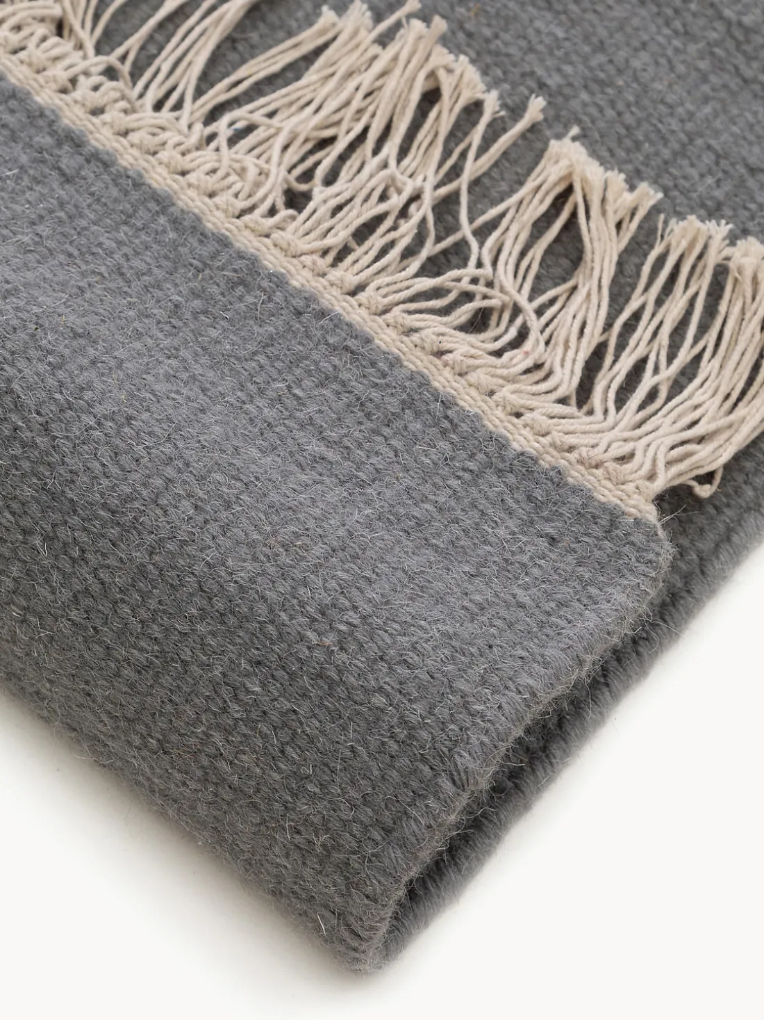 Alfombra artesanal de lana con flecos Liv