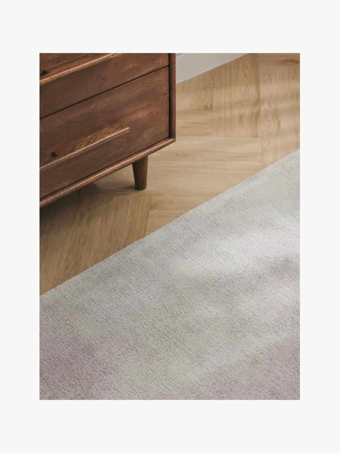 La alfombra de pelo bajo impresiona por su pelo de viscosa de estructura irregular y color cambiante: la viscosa brilla maravillosamente a la luz del día, tiene un brillo cromático especial y subraya el carácter de color melange de Jane.