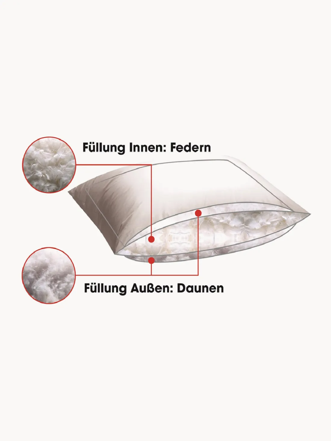 Estos artículos de cama están certificados por Traumpass: los productos están rellenos con plumas de las dos clases más altas I y II según EN 12934 y se obtuvieron de la cadena alimenticia, nunca de animales vivos