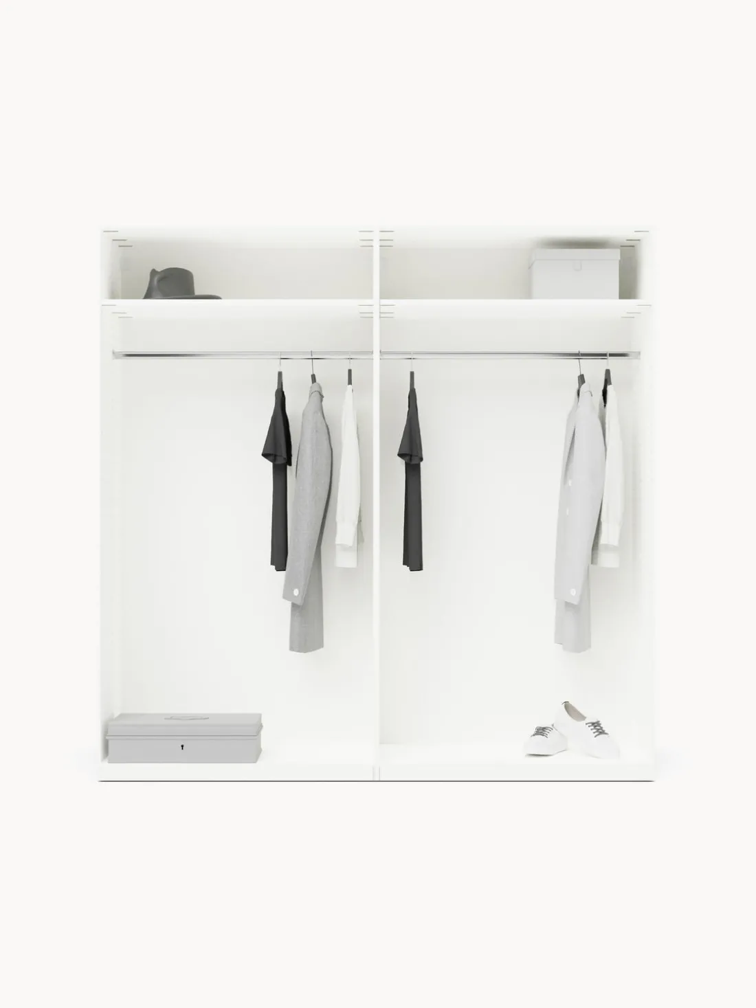 – Armario modular que consta de 2 módulos con diseño interior Basic que incluye 2 barra para colgar ropa y 2 estantes