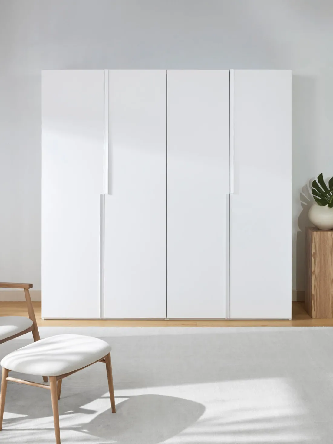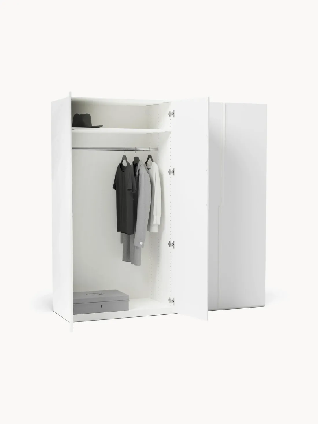 El montaje del armario se facilita gracias a los elementos premontados. Esto se hace en la posición vertical en el lugar donde quieras colocarlo.