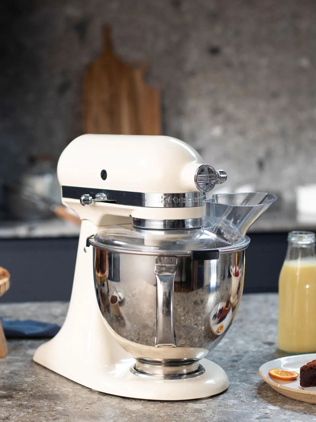 Elige entre una amplia gama de colores, desde tonos neutros hasta elegante plata, que combinarán con tu interior. La batidora de pie viene con un bol de acero inoxidable de 4,8 L en el que se pueden procesar hasta 1 kg de harina, 1 L de nata montada, 1,5 kg de puré de patatas o masa para 108 galletas. Este modelo viene con accesorios adicionales. Además de los accesorios estándar: un batidor, un mezclador plano y un gancho para masa, también incluye un bol de acero inoxidable de 3 L, un protector contra salpicaduras y un batidor de borde flexible con efecto espátula, ideal para pasteles, glaseados o purés.