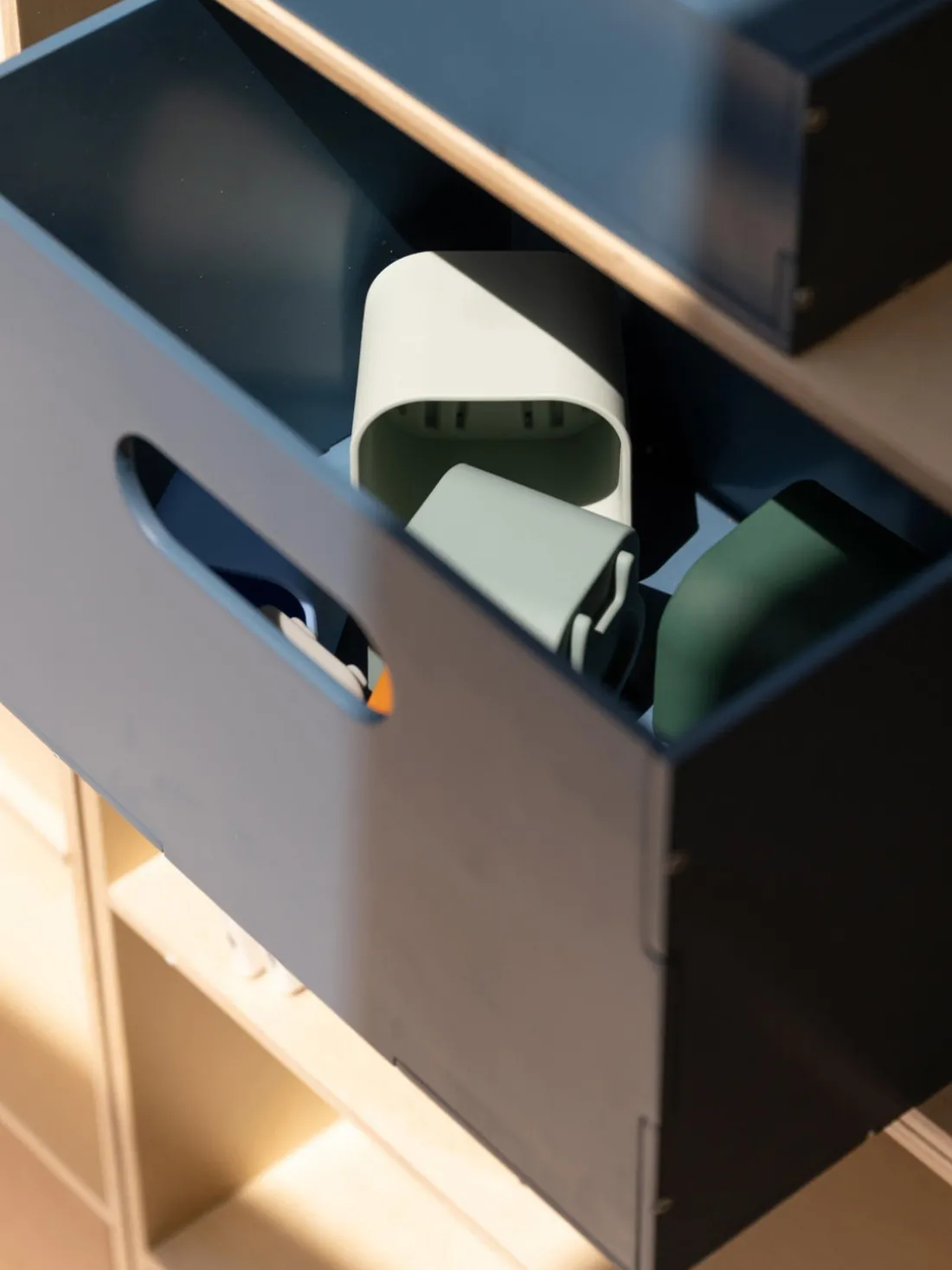 La caja Kiddo es una caja de almacenaje de madera en la que los niños pueden guardar sus juguetes favoritos, material escolar y utensilios de manualidades. Ayúdales a aprender a ordenar y a ahorrar un valioso espacio en el suelo. Una elegante caja de almacenaje de tamaño mediano que combina perfectamente con la estantería Kiddo de Nofred. Una caja de almacenaje multifuncional y móvil de colores estupendos que puede colocarse en cualquier habitación de la casa donde el niño pase el tiempo.