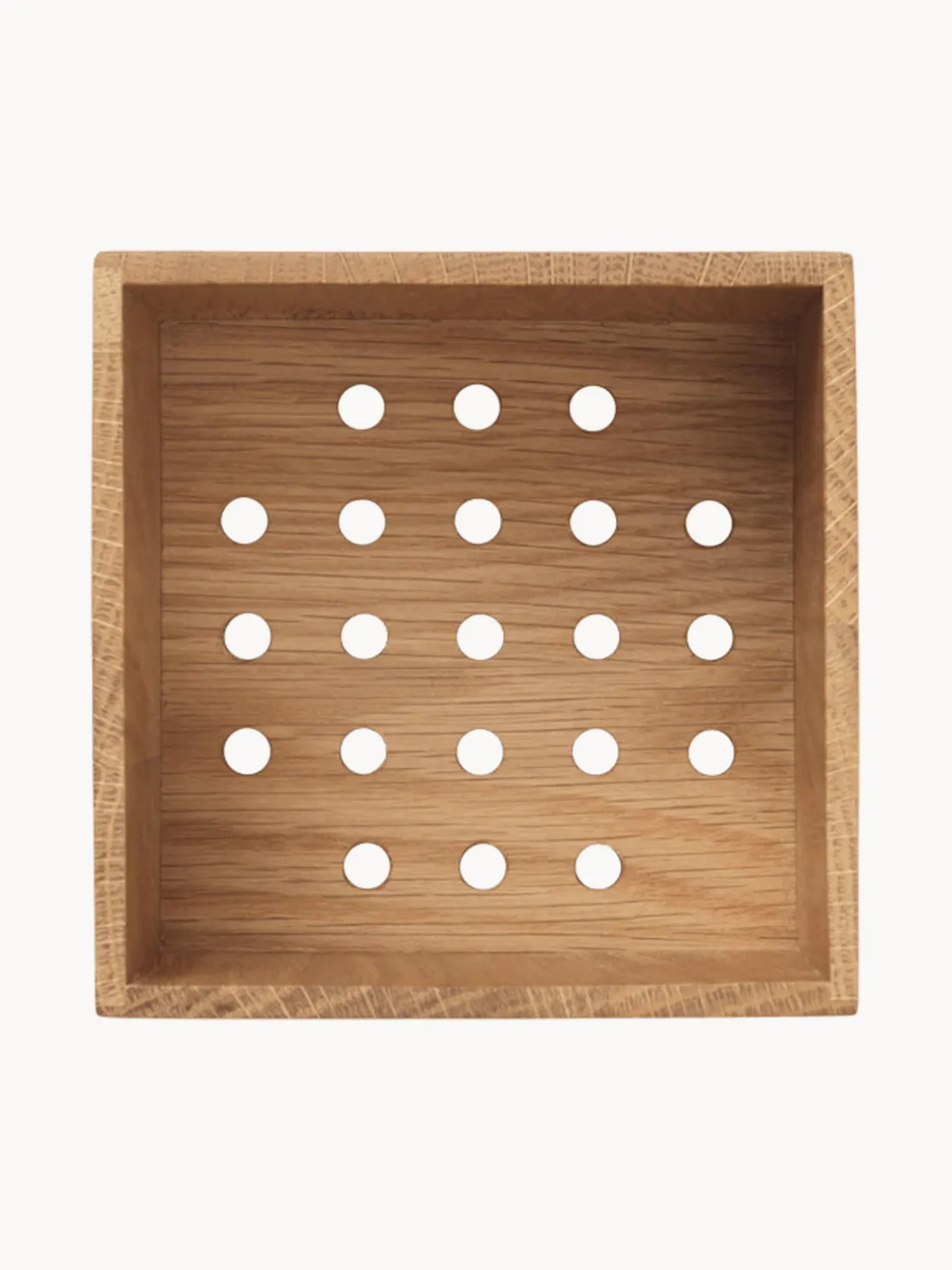 La caja para ajos BON tiene juntas precisas en las esquinas y orificios de ventilación en la parte inferior para mantener los ajos frescos y secos, al tiempo que los protege de la luz solar. Fabricada en madera con certificación FSC™, su diseño combina la elegancia con la utilidad moderna, lo que la convierte en un complemento perfecto para las cocinas contemporáneas.