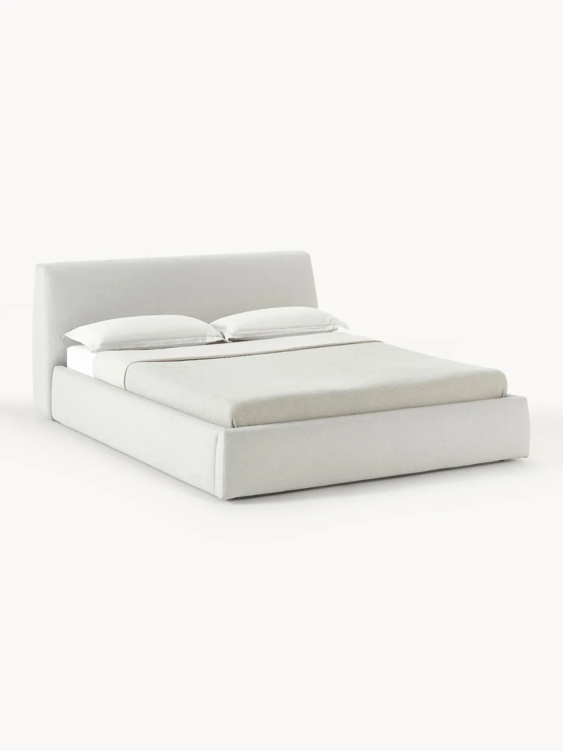 Cama tapizada con espacio de almacenamiento.