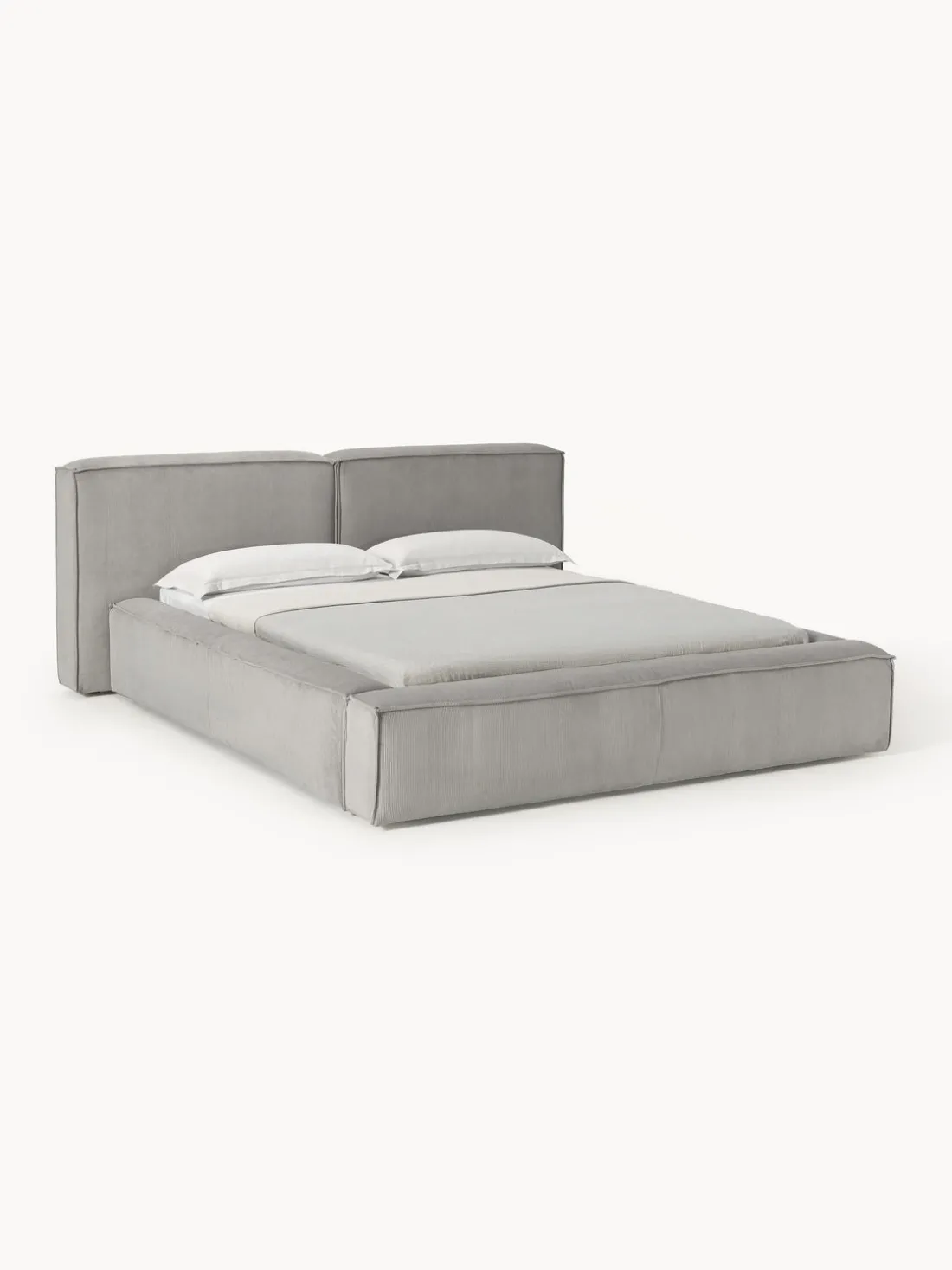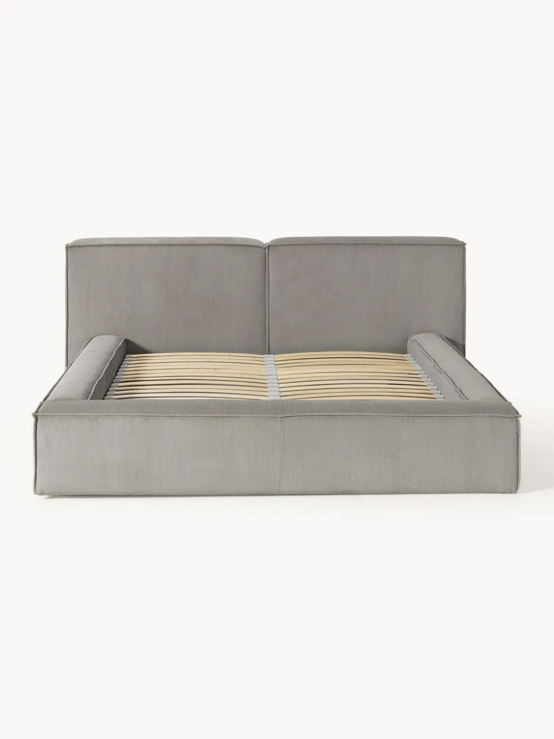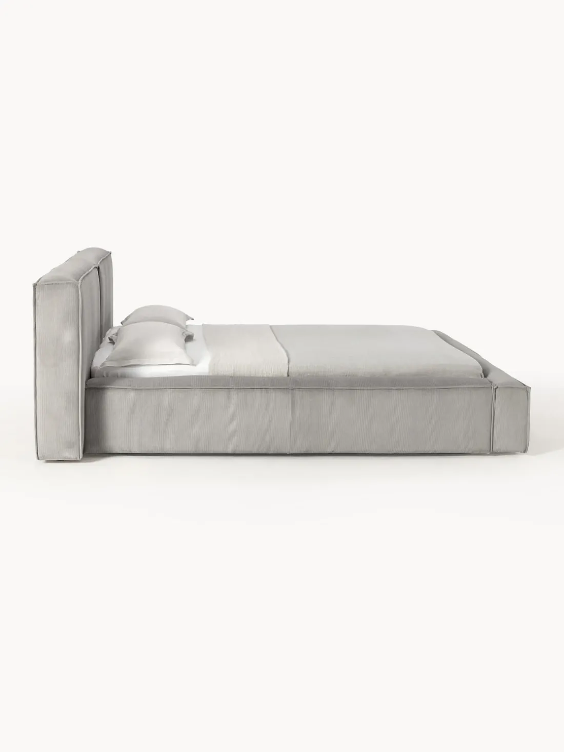 Cama tapizada con espacio de almacenamiento.