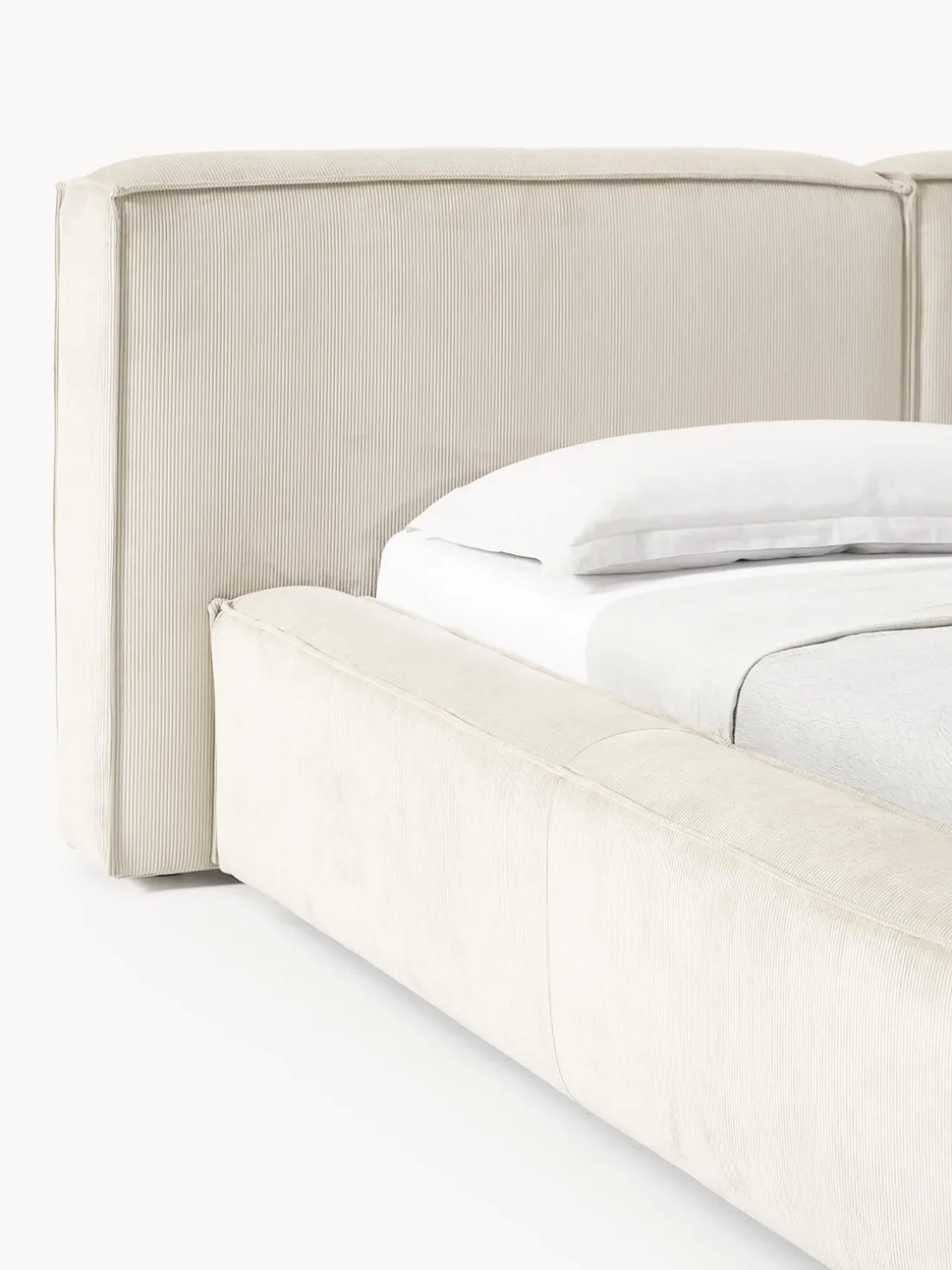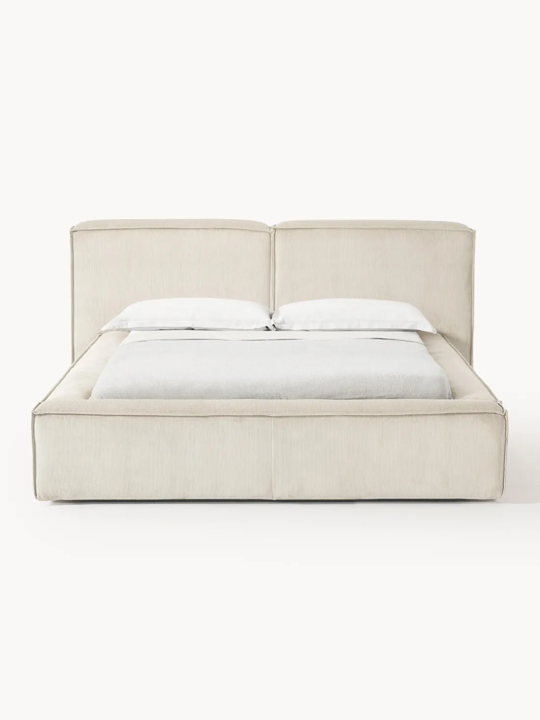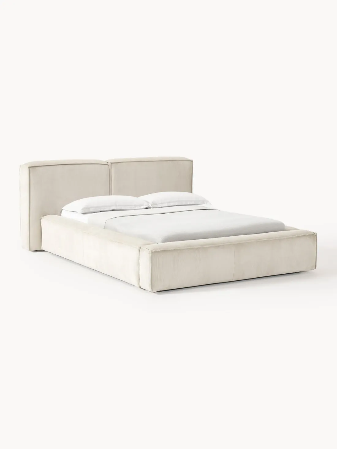 Cama tapizada con espacio de almacenamiento.