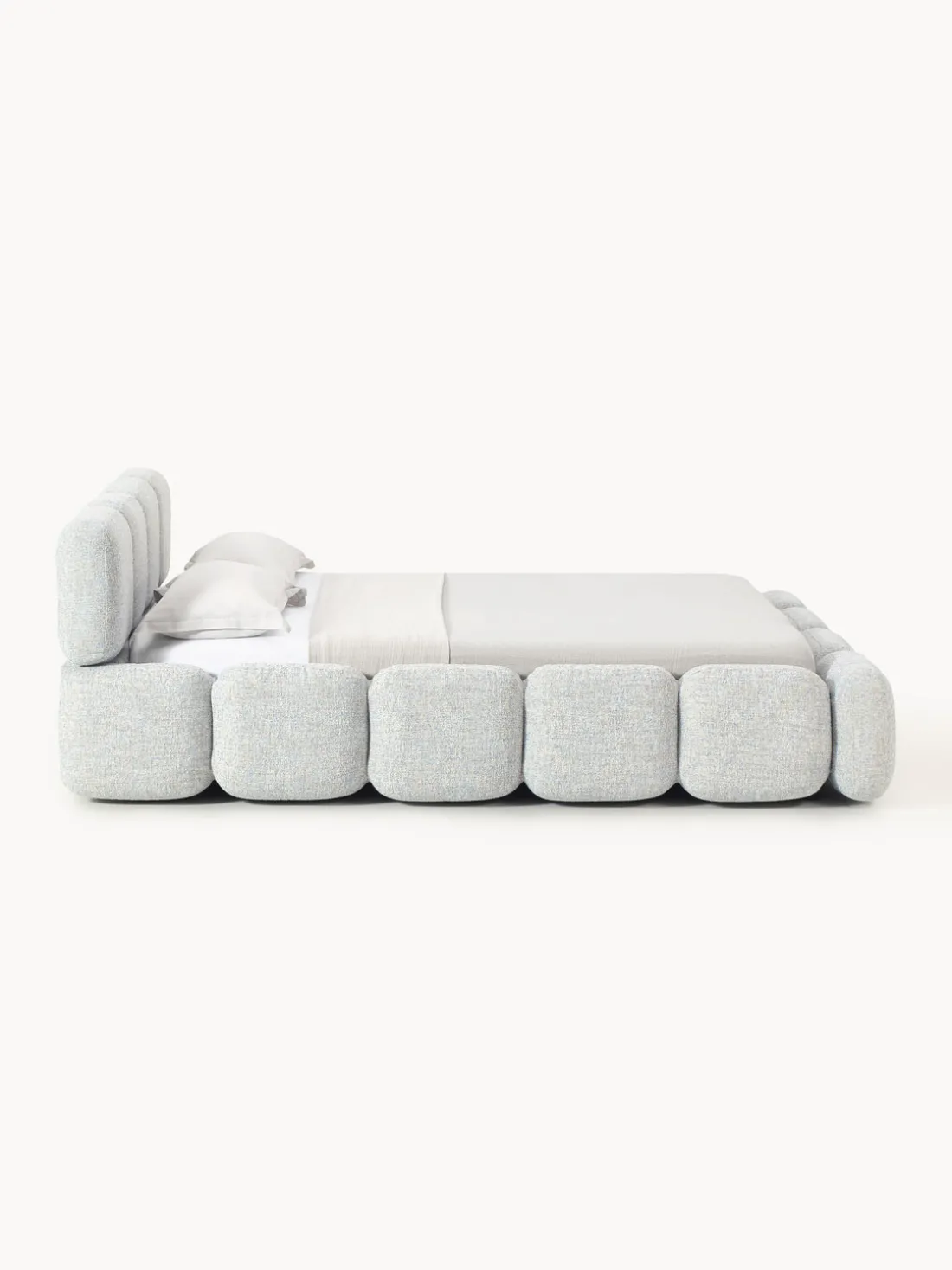 Cama tapizada en tejido bouclé Tayla