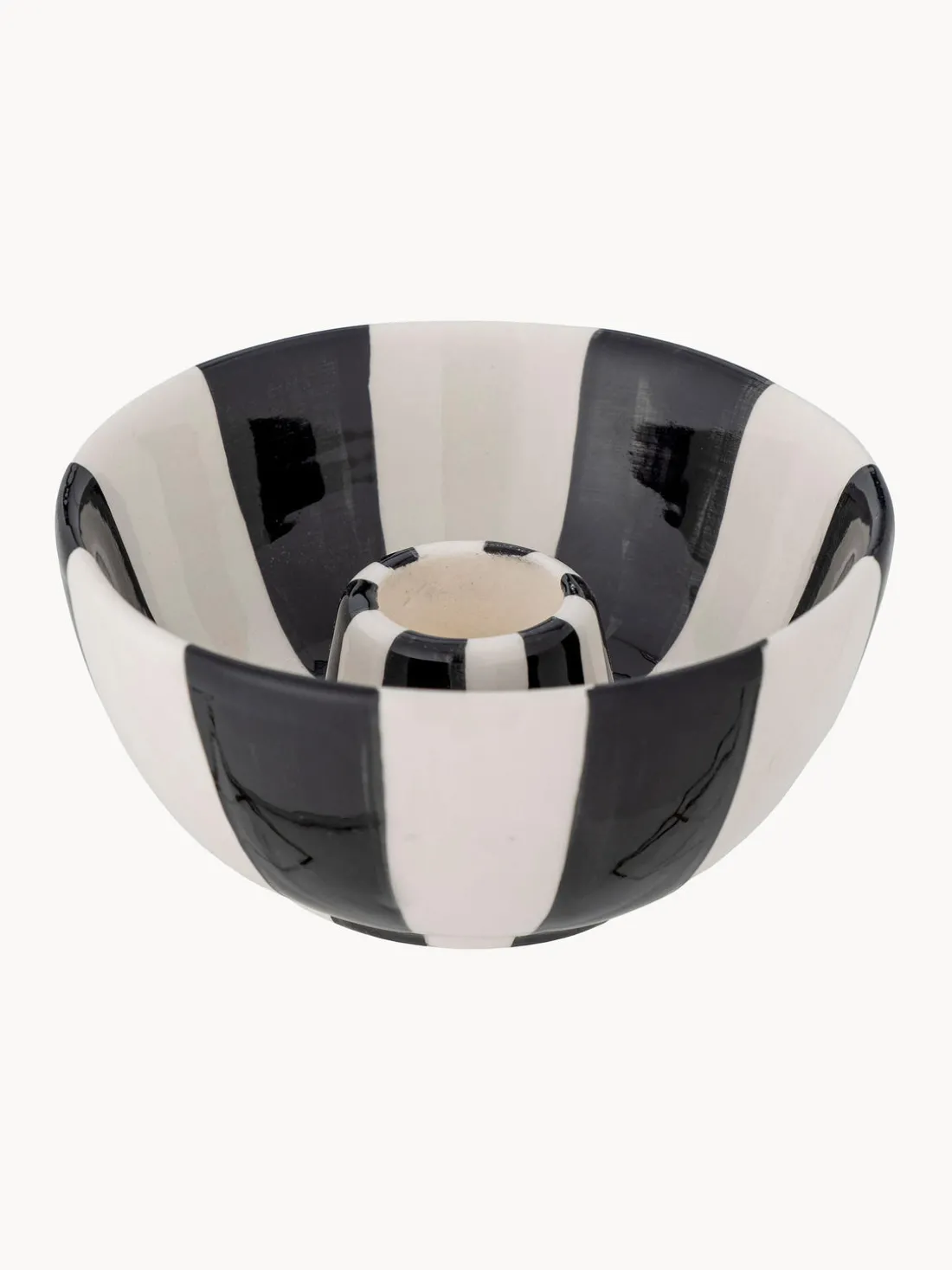 El candelabro Eja es un cuenco con candelabro integrado esmaltado a rayas. Utilízalo como elemento decorativo en tu hogar o para crear un ambiente acogedor y atmosférico. Aportará un toque moderno y elegante a tu decoración.