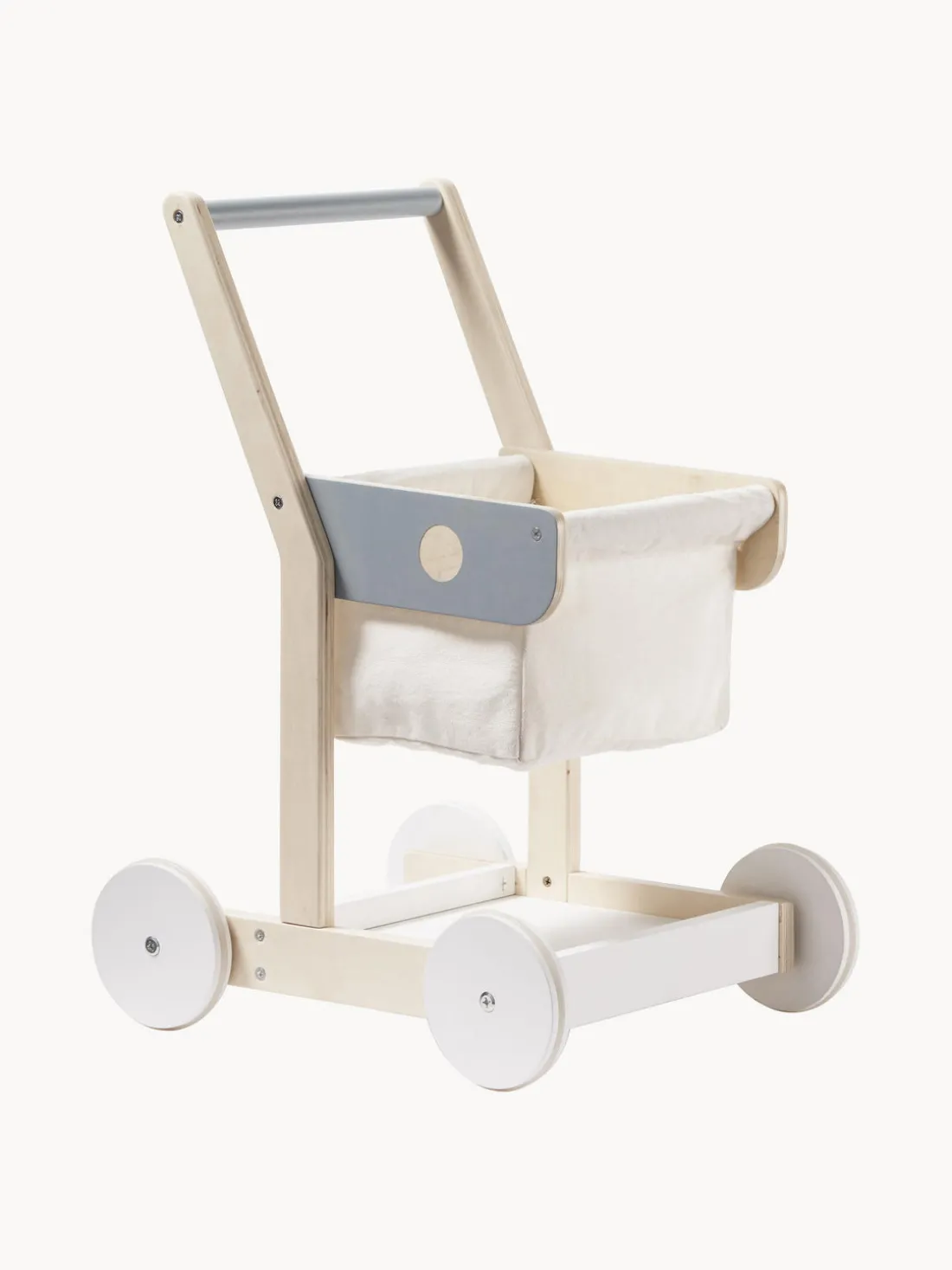 Este bonito carrito de juguete fomenta el movimiento y es sencillamente ideal para guardar en él la compra, la repostería, etc. Por supuesto, también se puede utilizar para transportar peluches cuando estén cansados de hacer la compra.