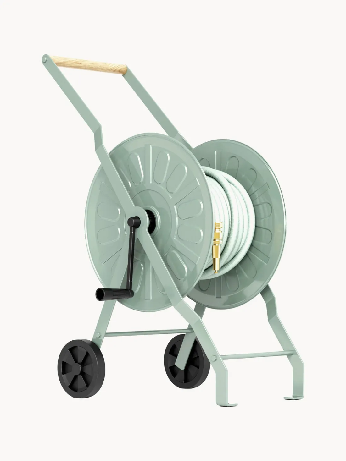 El carro portamangueras AZIZA, fabricado artesanalmente, hace que regar sea un placer sin esfuerzo. Con su diseño atemporal y su práctica manivela, este ayudante de jardín se convierte en un fiel compañero en el cuidado de las plantas.
