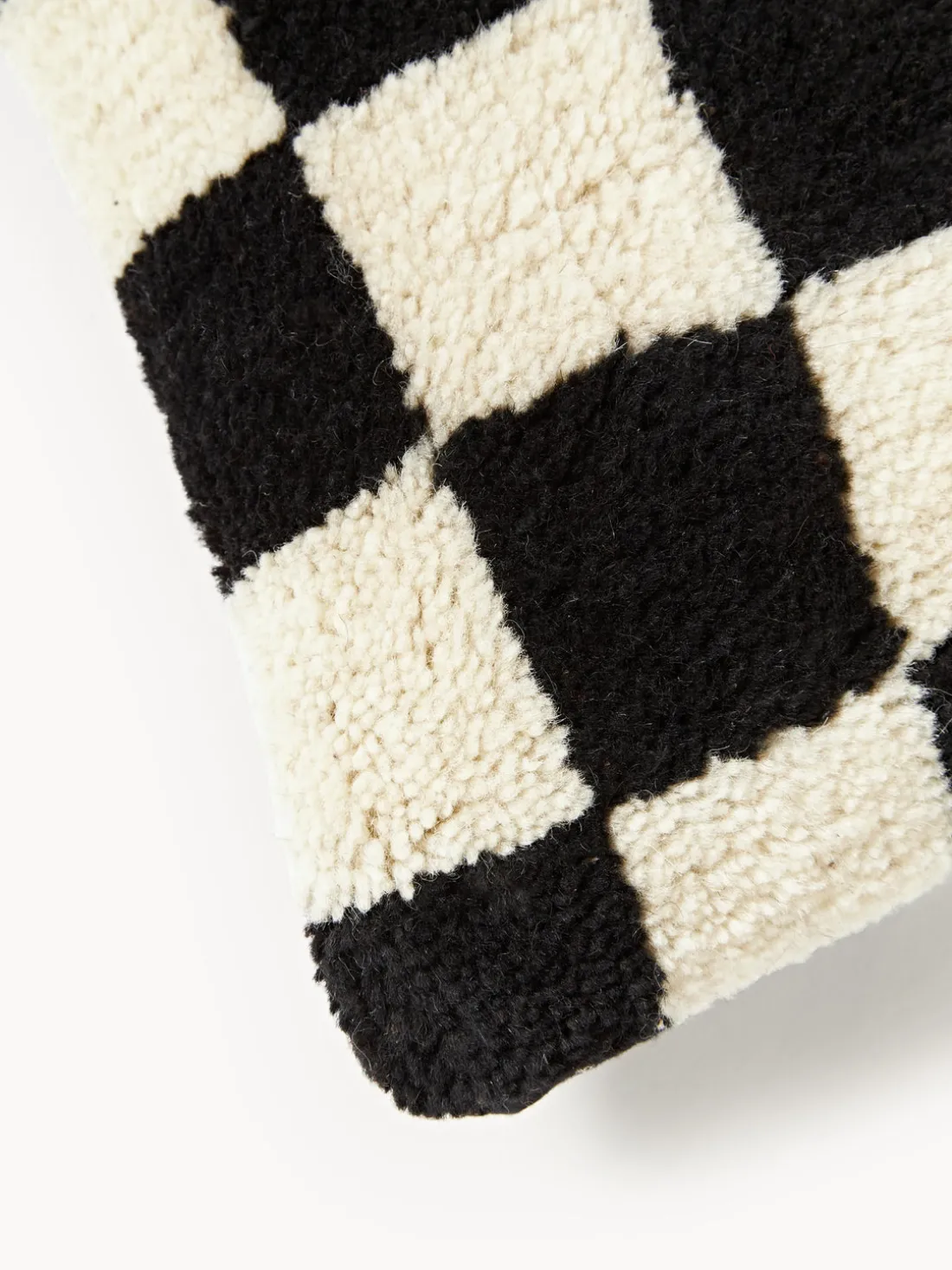 Además del moderno estampado de ajedrez, este cojín también será un complemento cómodo para tu sofá. Gracias a su composición de punto grueso de lana y suave algodón, es un cojín decorativo duradero.