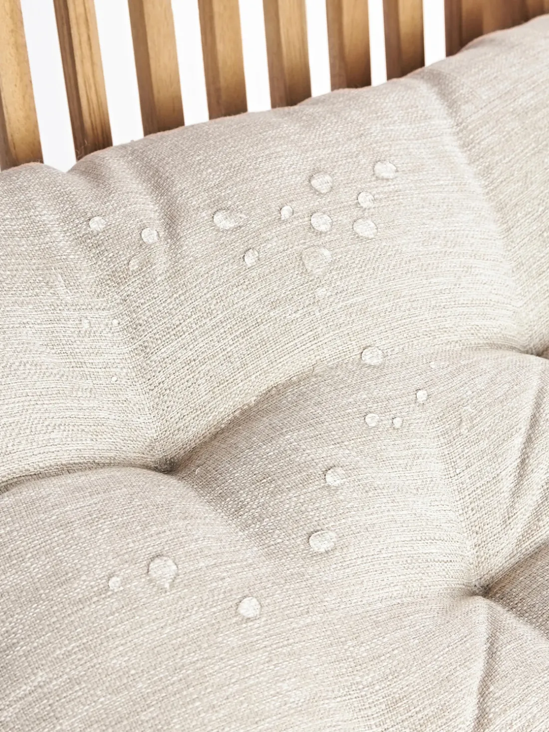 Adecuado para uso exterior: la superficie repelente al agua protege el producto de la lluvia ligera durante un breve periodo de tiempo. Si está mojado dejar secar en un lugar soleado.