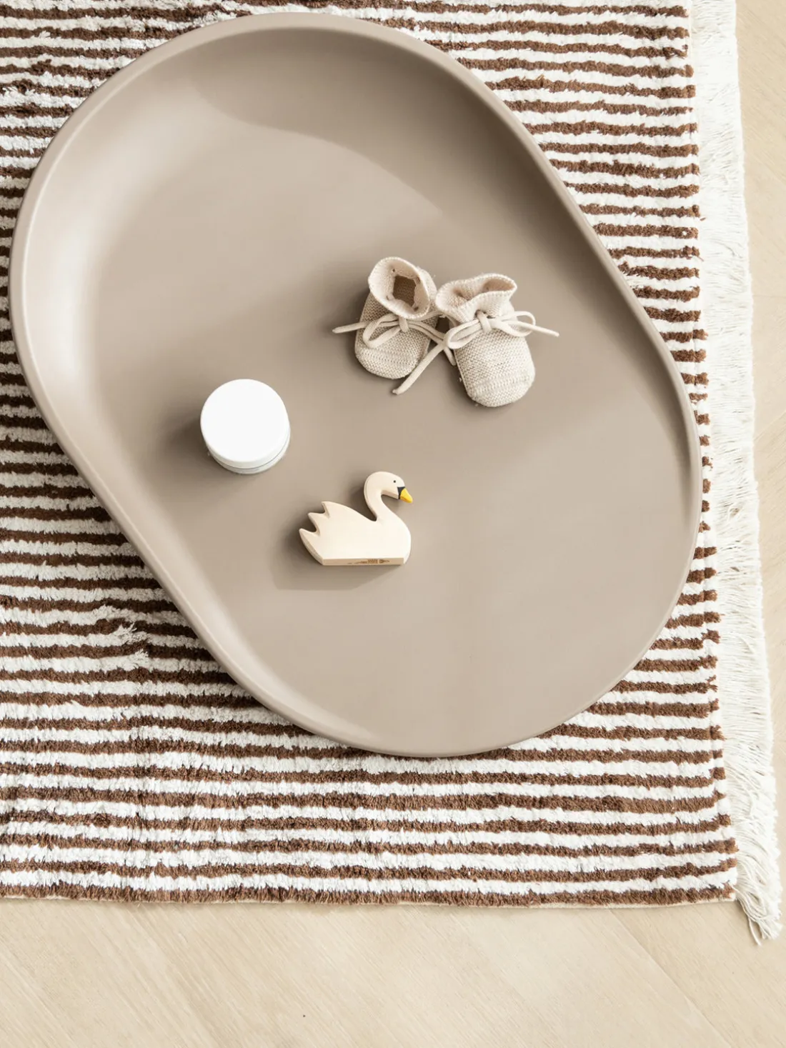 El cambiador ha sido desarrollado especialmente con un enfoque en la seguridad y la estabilidad. Está hecho de espuma PUR sin base dura, lo que lo mantiene estable y evita que se vuelque o caiga durante su uso. Las formas suaves y acolchadas del cambiador se adaptan al cuerpo de tu bebé y proporcionan una sensación agradable y calmante. Los laterales altos mantienen a tu bebé de forma segura en su lugar y evitan que se ruede o se caiga. Puedes concentrarte en cambiar y cuidar a tu bebé sin preocuparte por la estabilidad del cambiador.