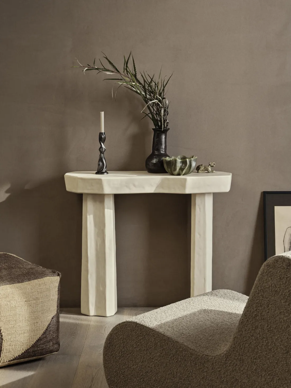 La consola Staffa es apta tanto para interior como para exterior y une arte y utilidad. Con su aspecto llamativo y diseño robusto, encaja en cualquier zona de entrada, pasillo o exterior y la realza con su carácter escultural y majestuoso.