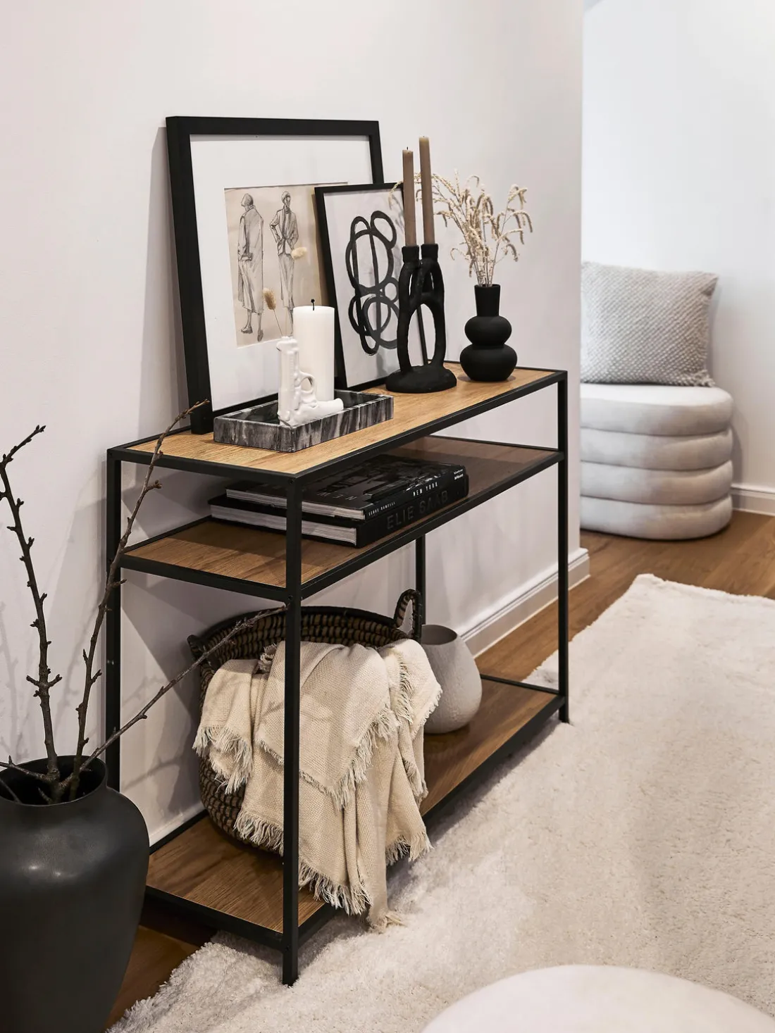 Esta consola tiene tres estantes.