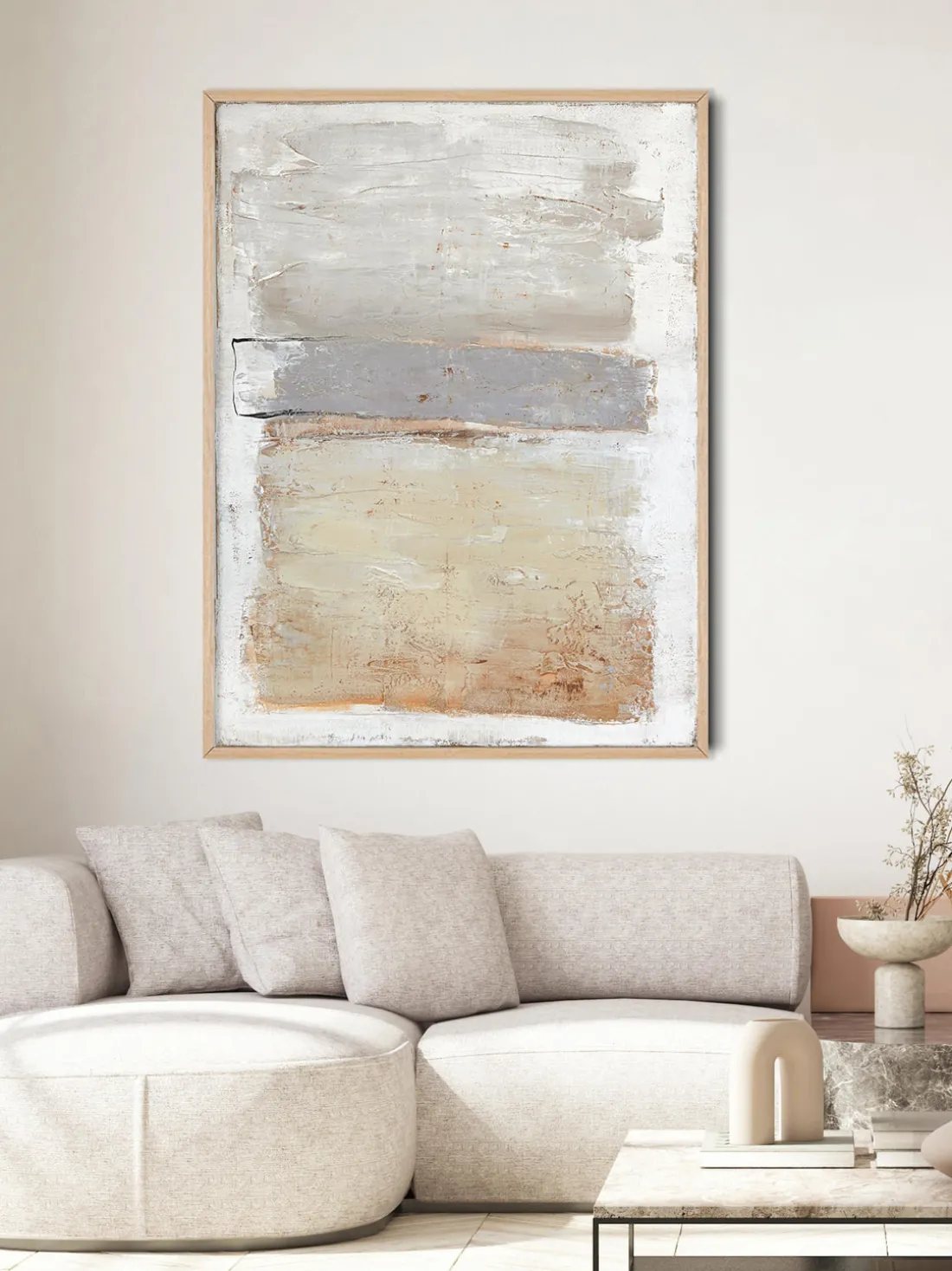Cuadro en lienzo pintado a mano Scenario, marco de madera