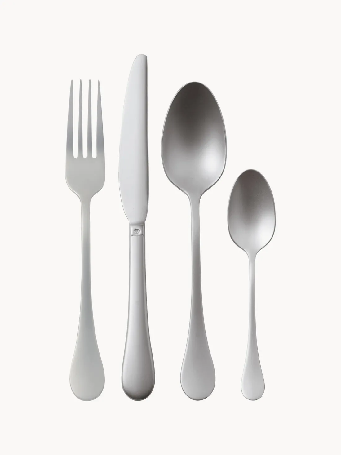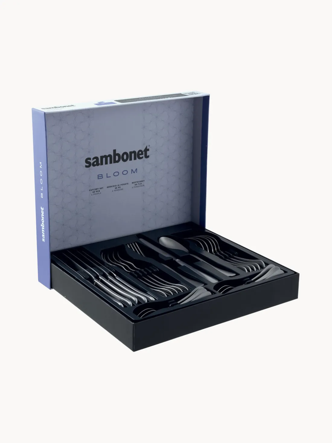 Esta vajilla de 24 piezas consta de 6 tenedores, 6 cuchillos, 6 cucharas y 6 cucharillas.